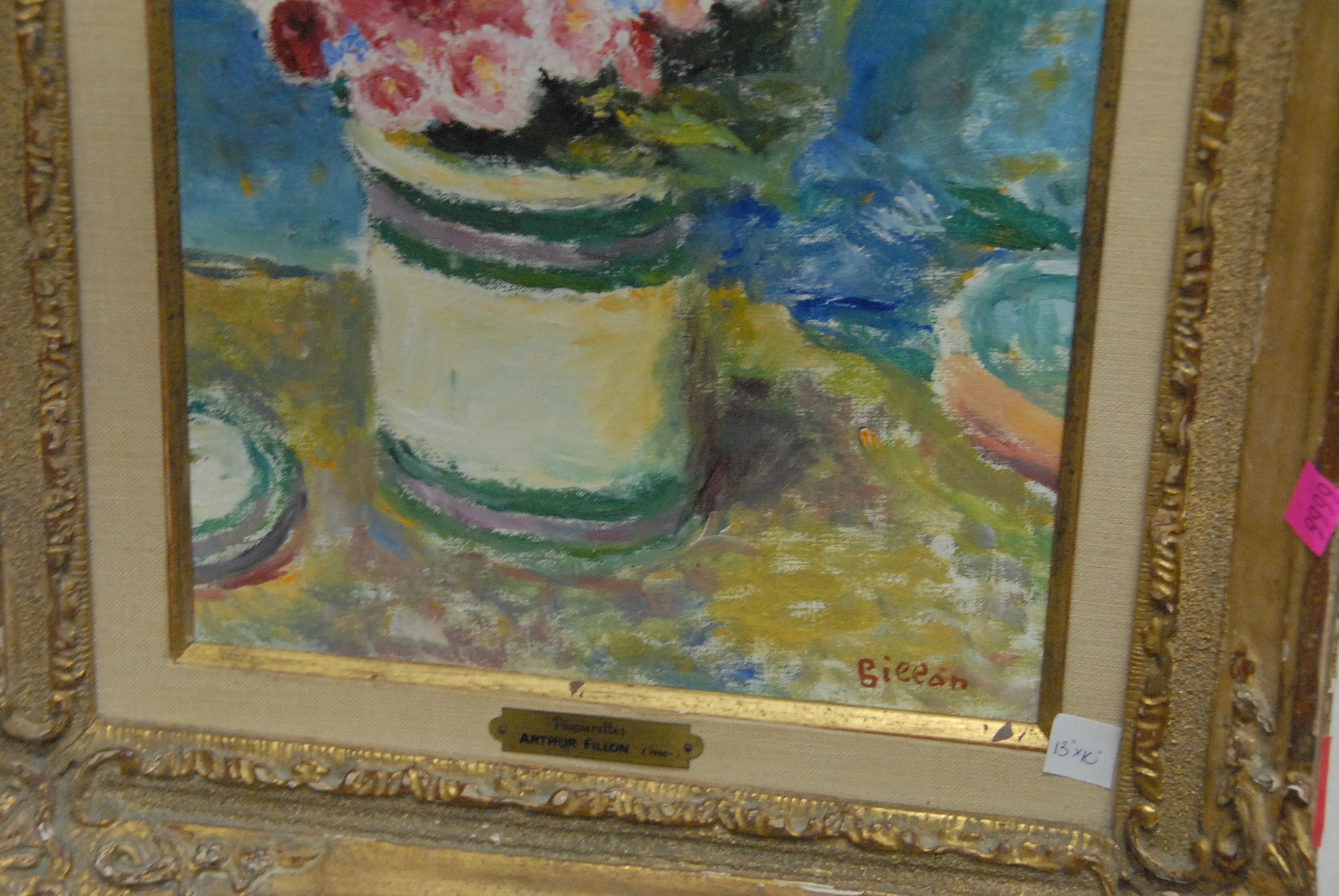 Lot 221: Arthur Fillon 1900-1974 PAQUERETTES oil on canvas still life of flowers signed lower right Fillon 13 x 10 Wally F. Galleries New…