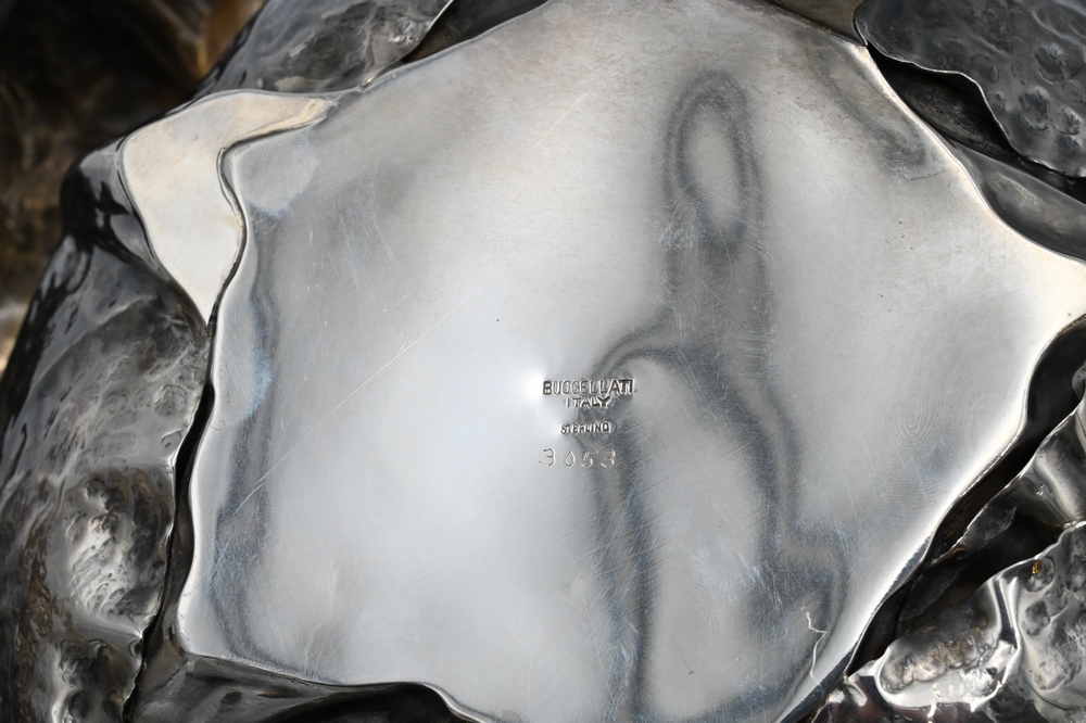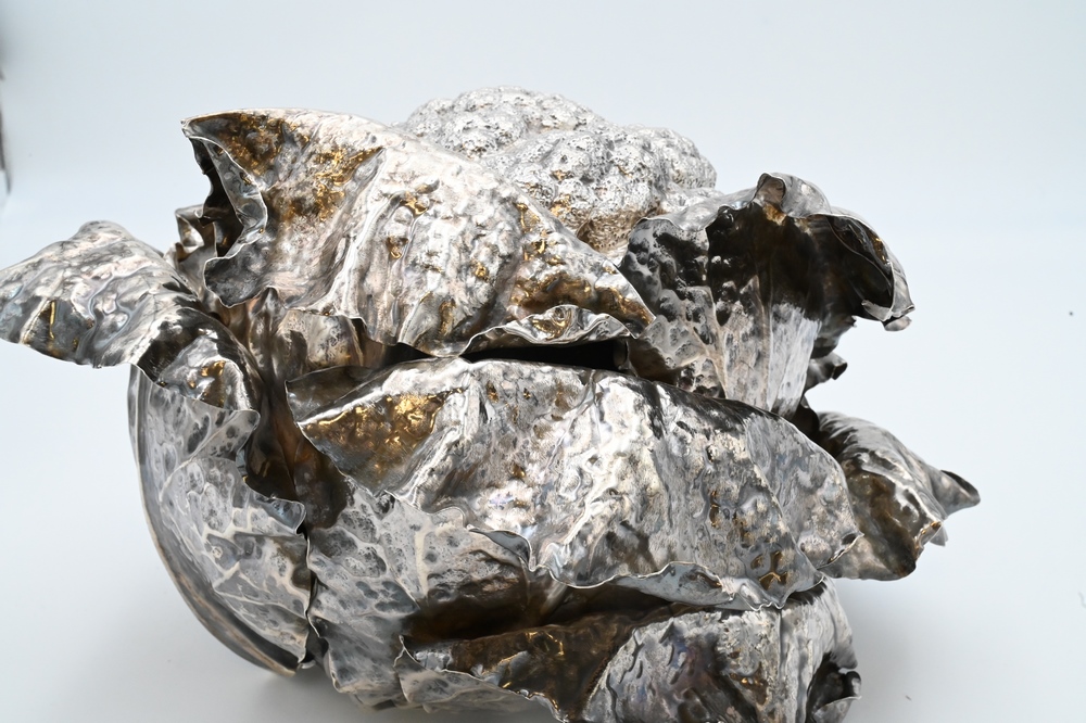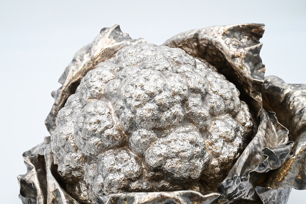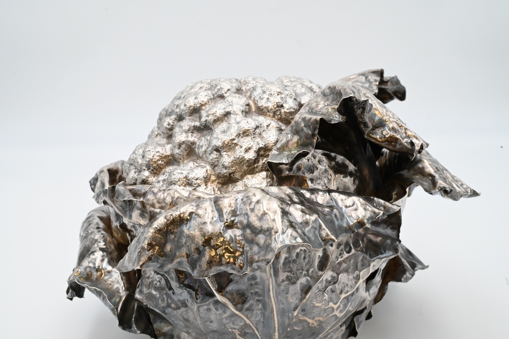 Buccellati Sterling Silver Cauliflower Form Covered Tureen, Italian silver in the form of realistically modeled head of cauliflower, having furled leaves, marked “Buccellati, Italy, sterling 3053”, height 8 1/2 inches, width 13 inches.