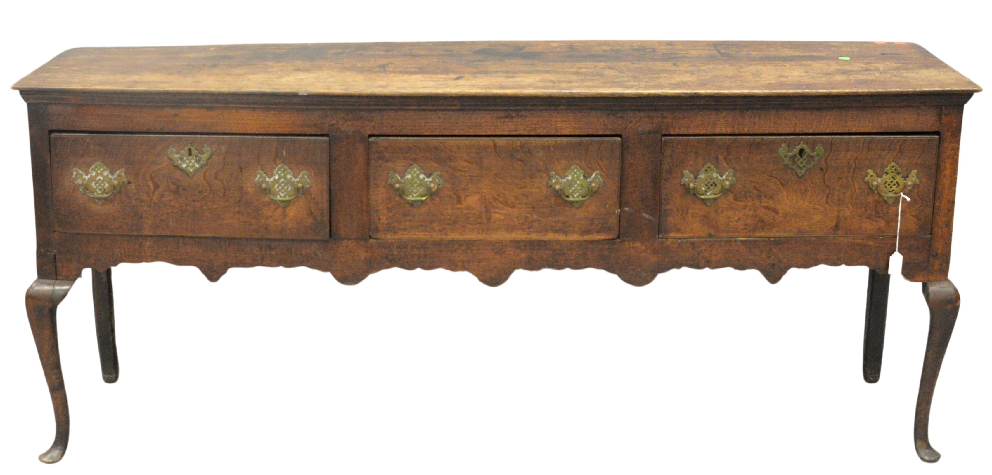 George II Provincial Carved Oak Sideboard, height 30 1/4 inches, width 6 feet, depth 19 inches