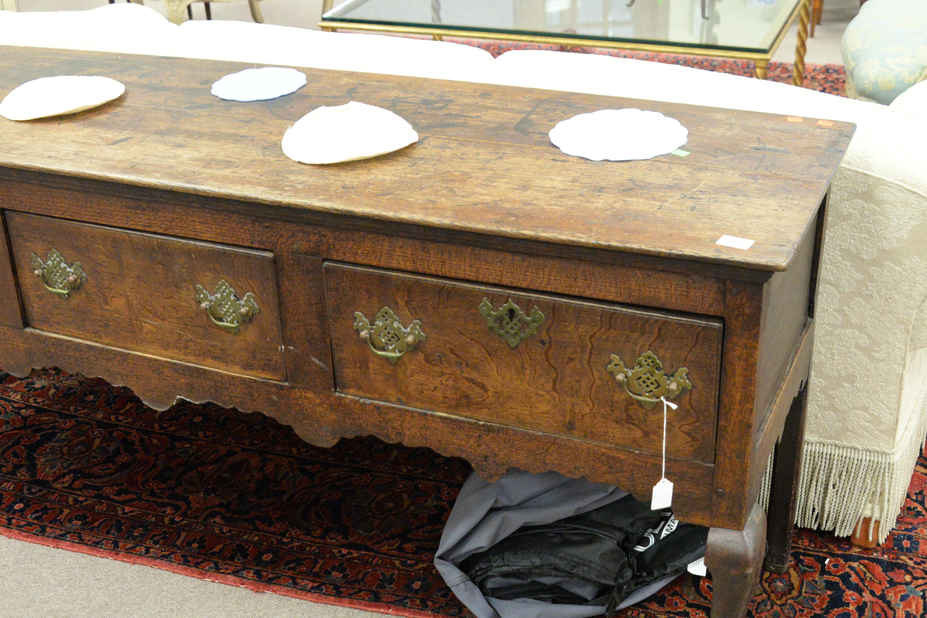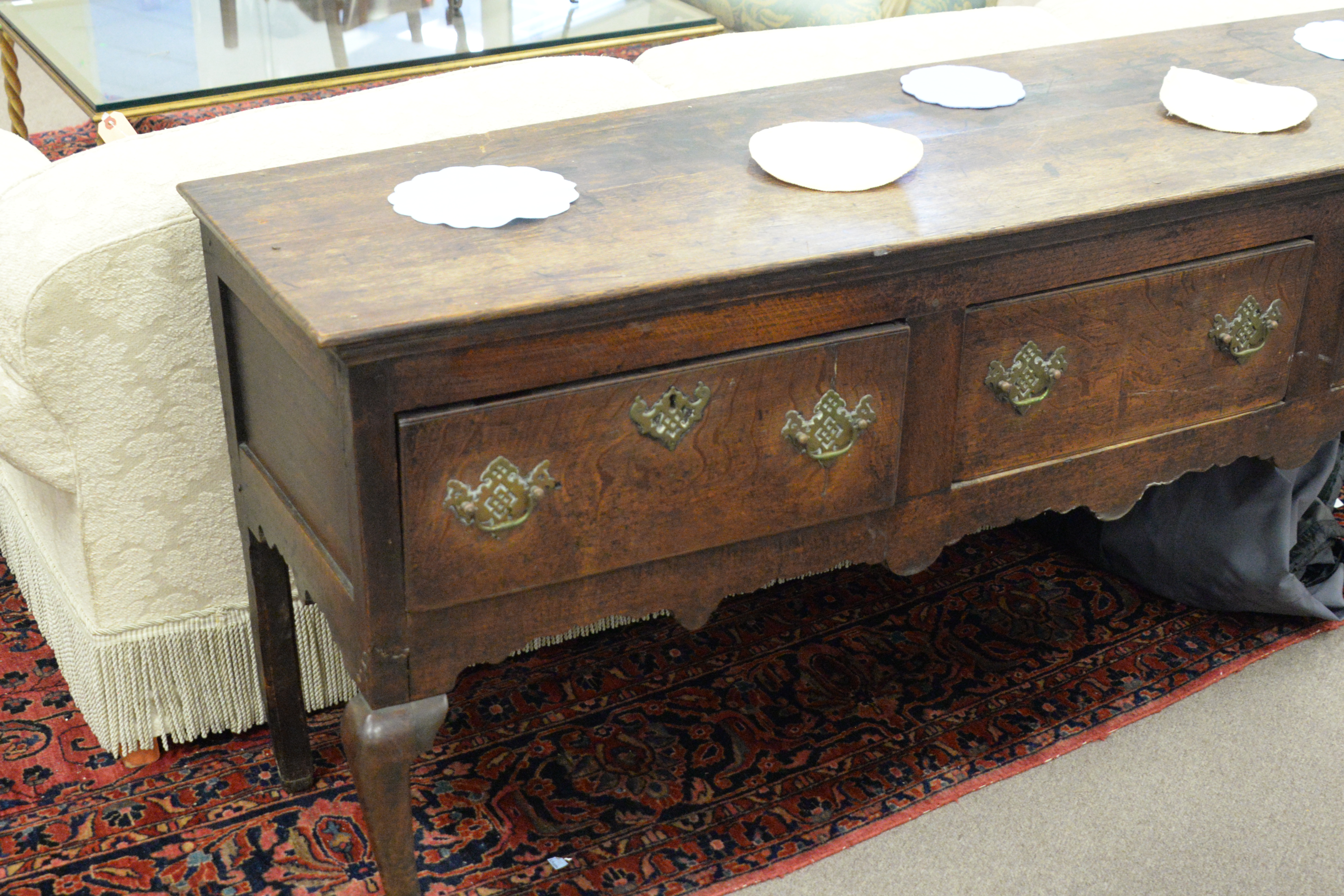 George II Provincial Carved Oak Sideboard, height 30 1/4 inches, width 6 feet, depth 19 inches