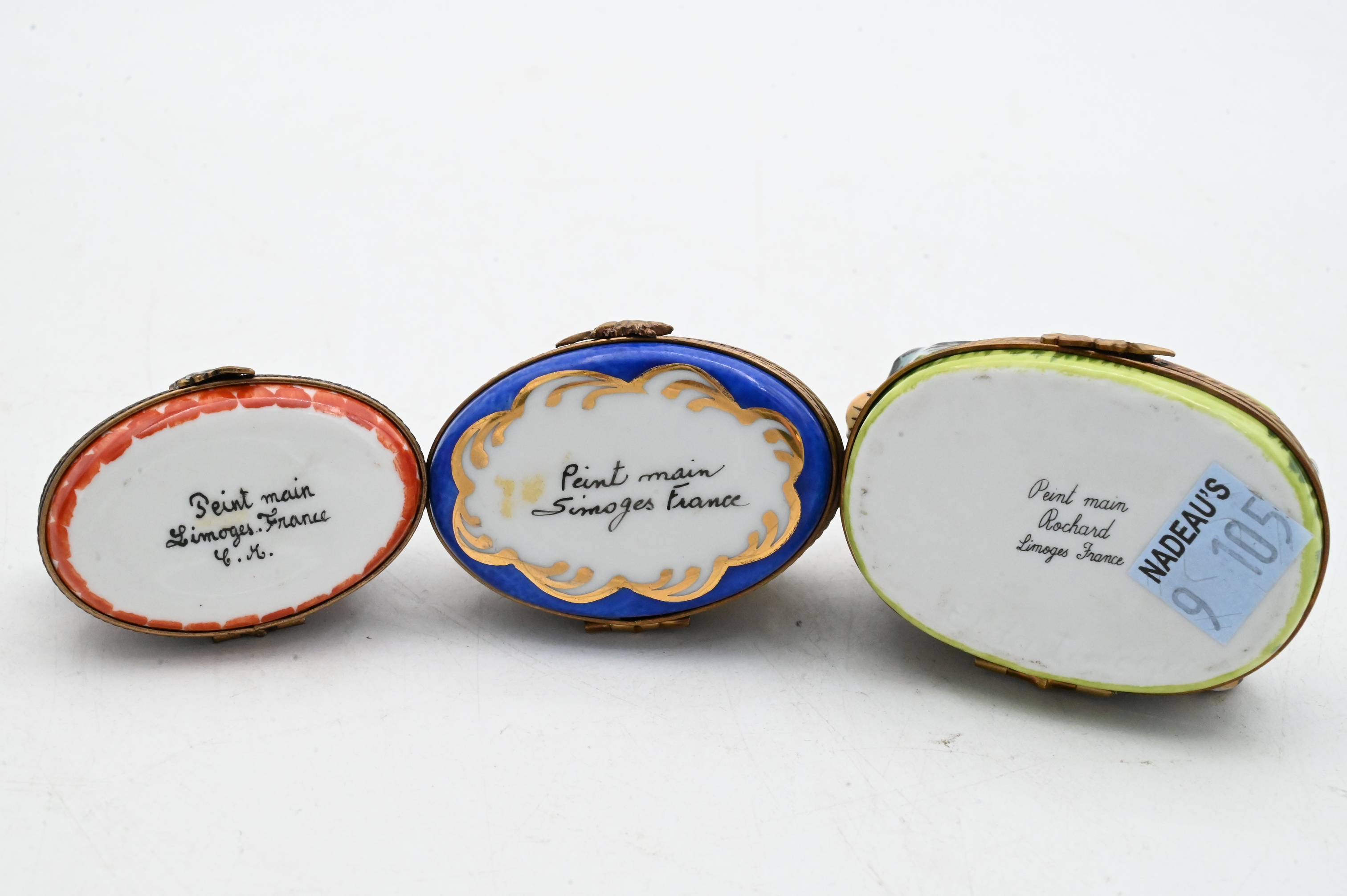 Group of Three Hand-Painted French Limoges Porcelain Boxes
