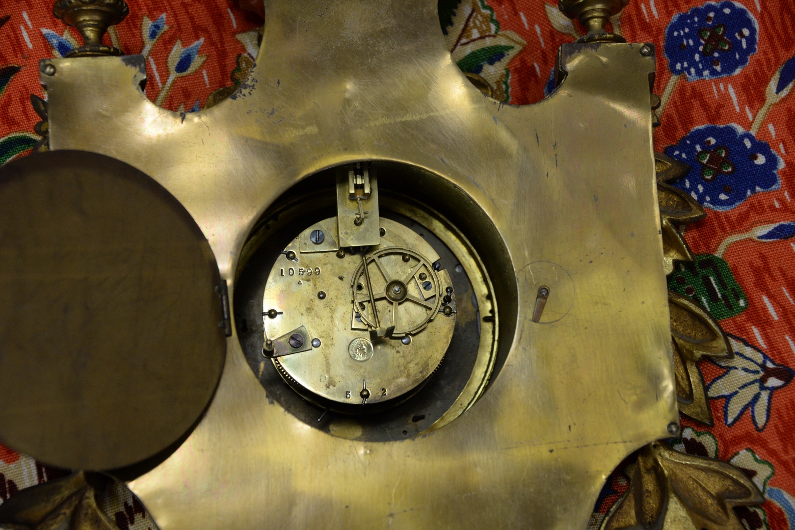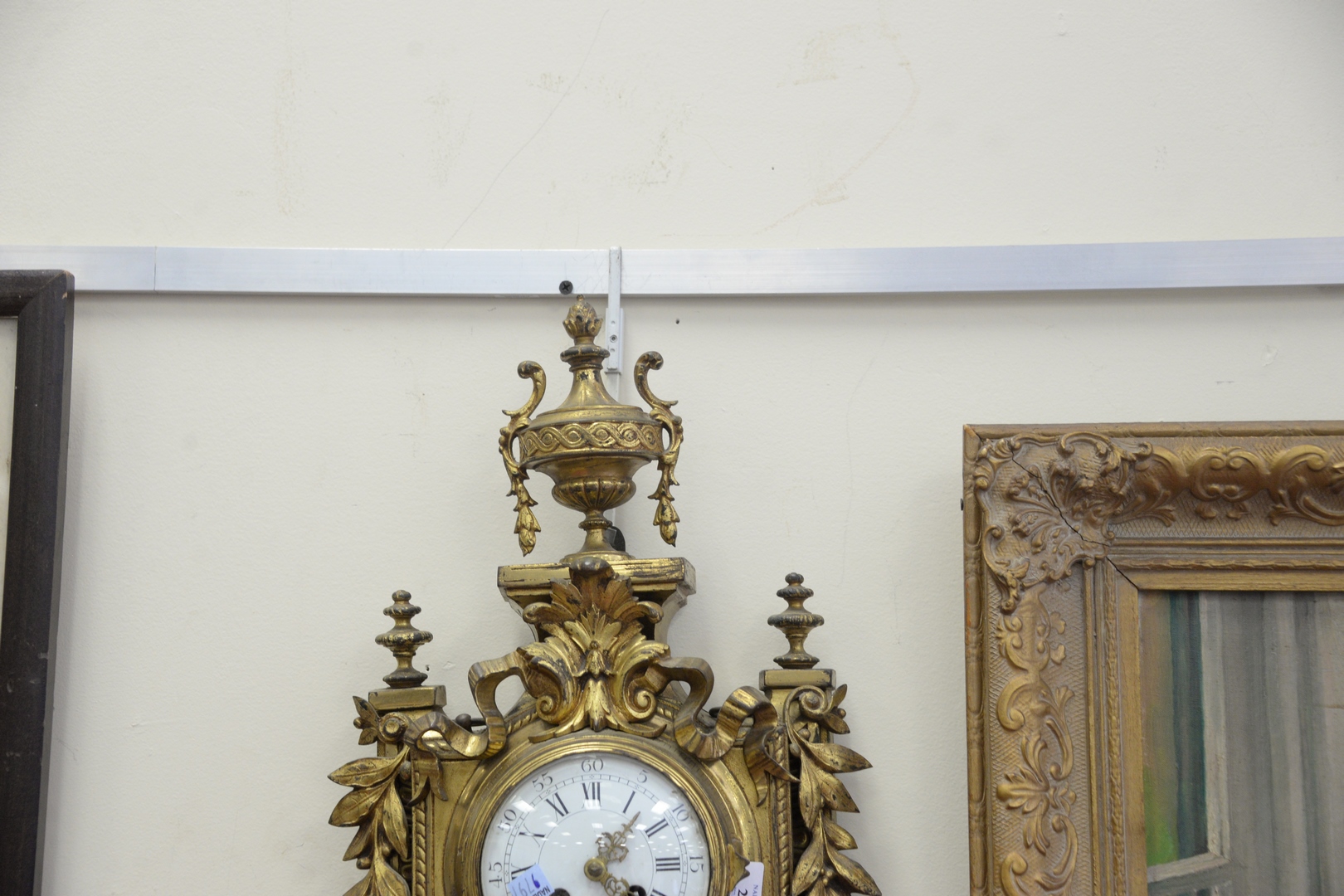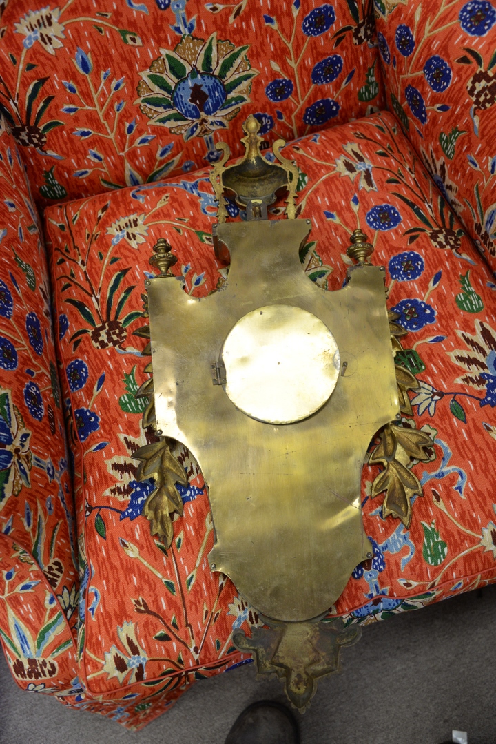 Louis XV Style Brass Wall Clock, with porcelain dial, height 26 inches.