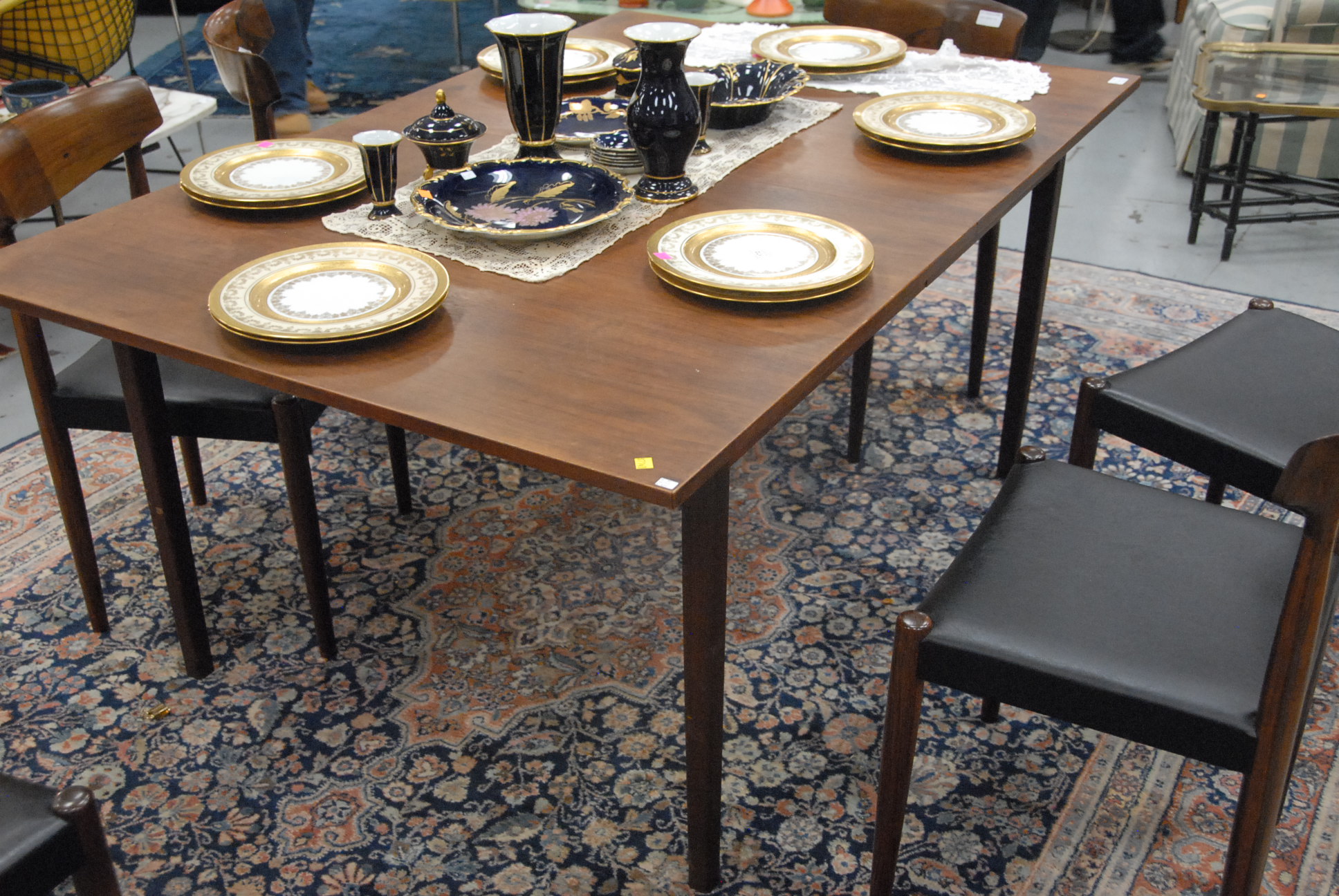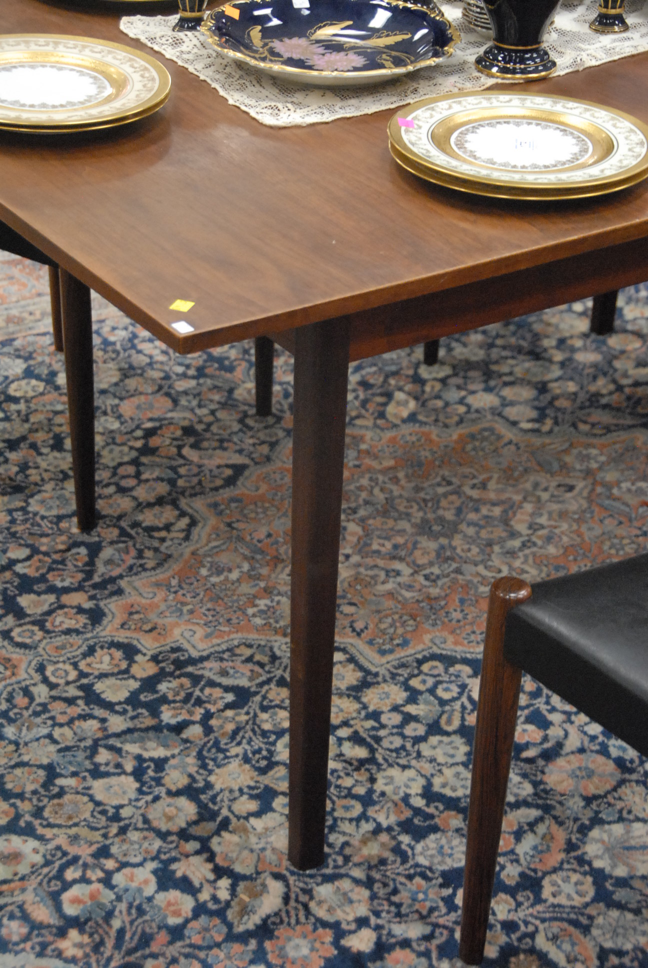 Lot 221: Mid-Century dining table with square tapered legs attributed to Foster McDavid, top: 42 x 64.
