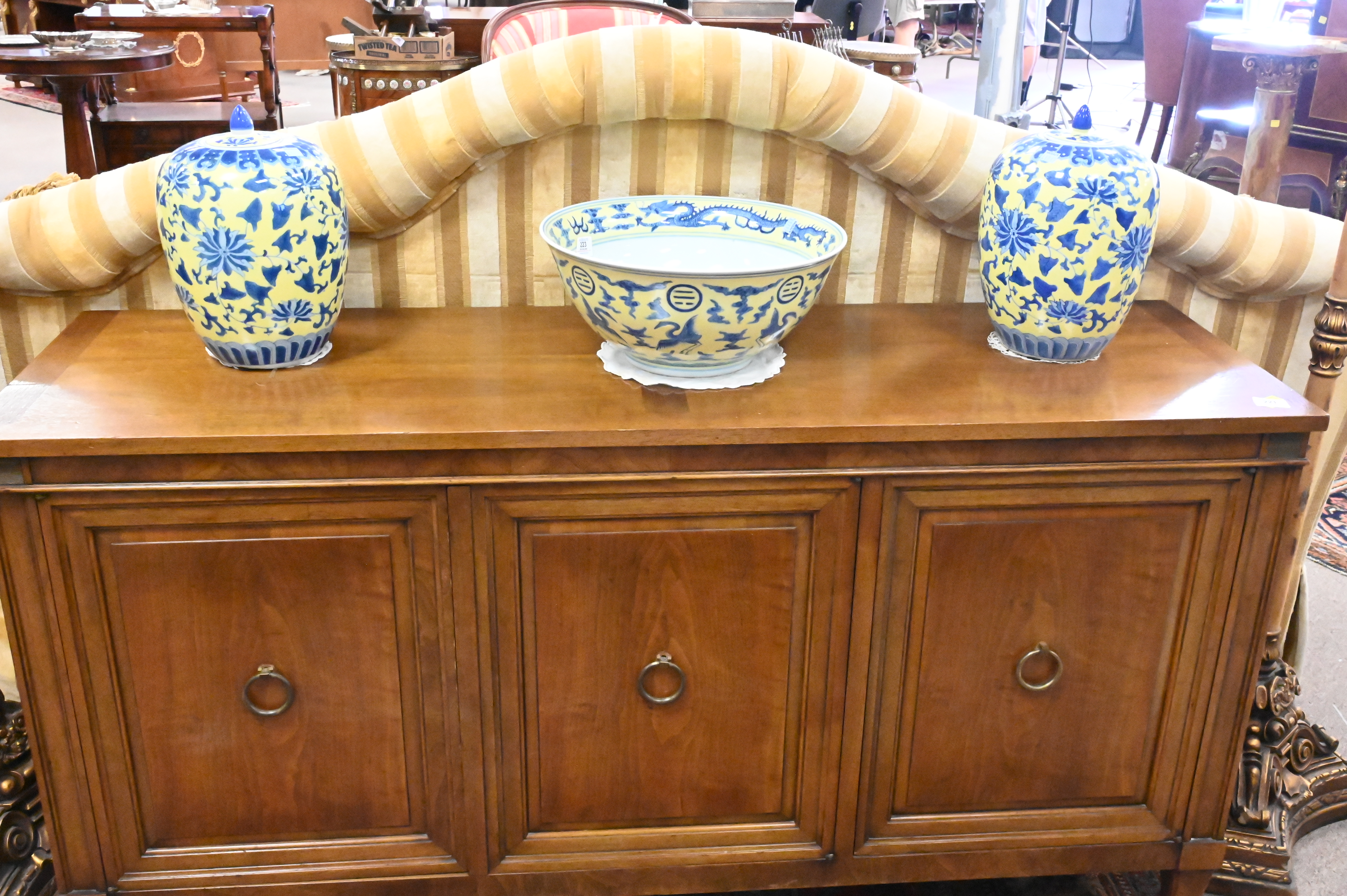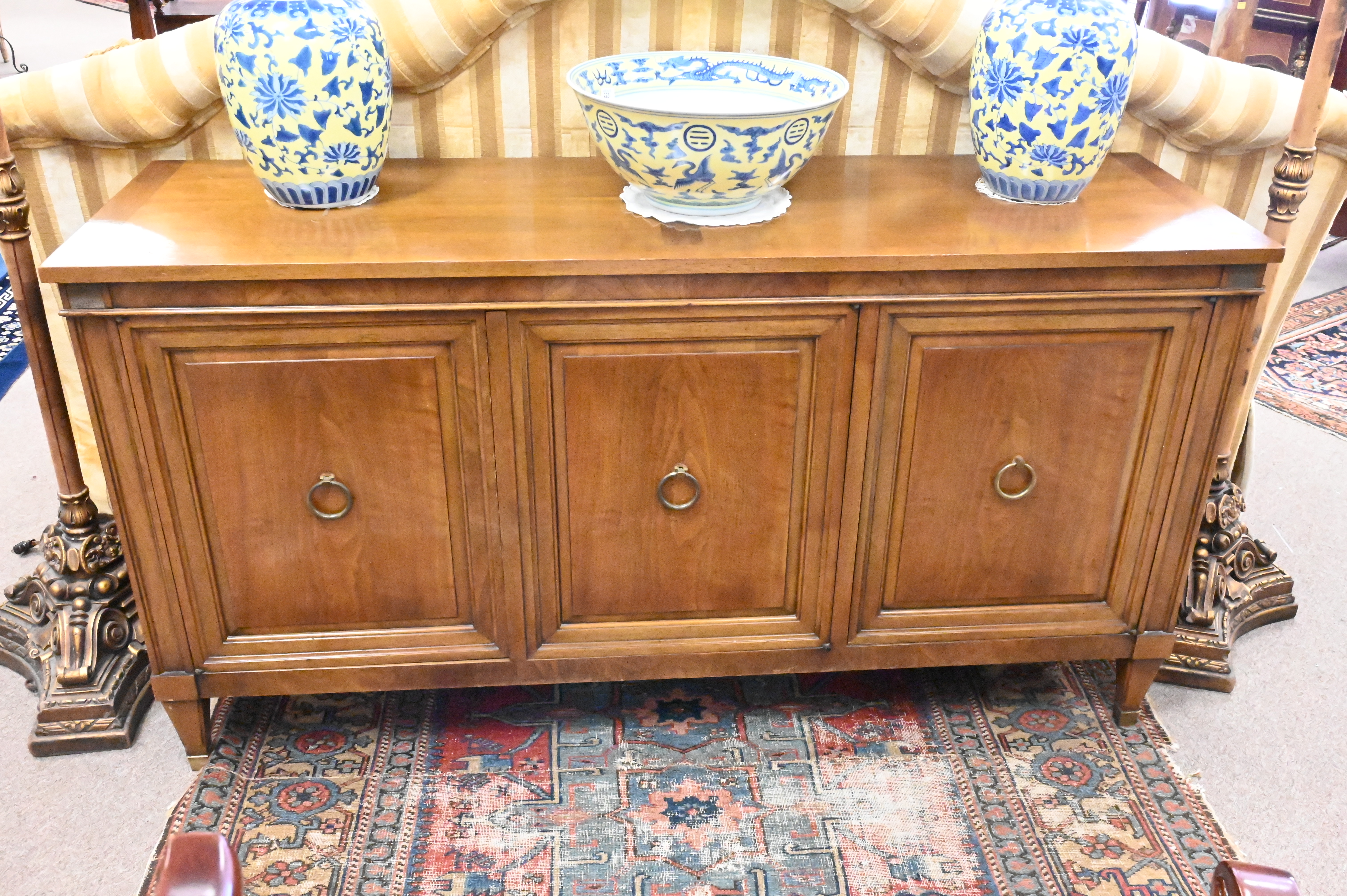 Millings Road Walnut Credenza, with fitted drawers behind two doors, height 32 inches, top 18″x60″