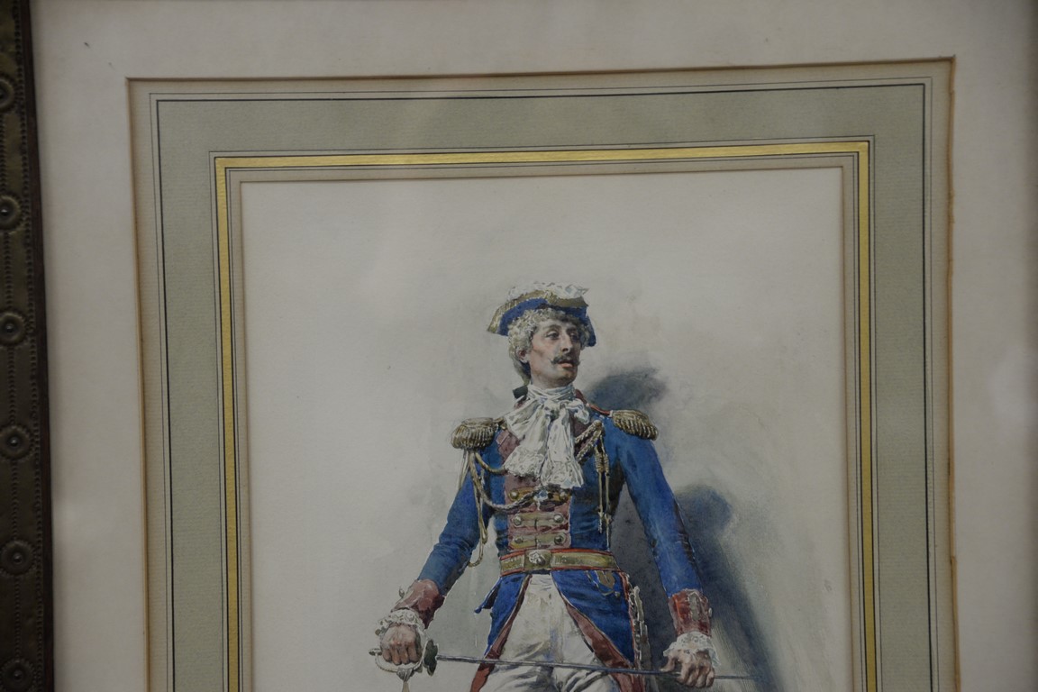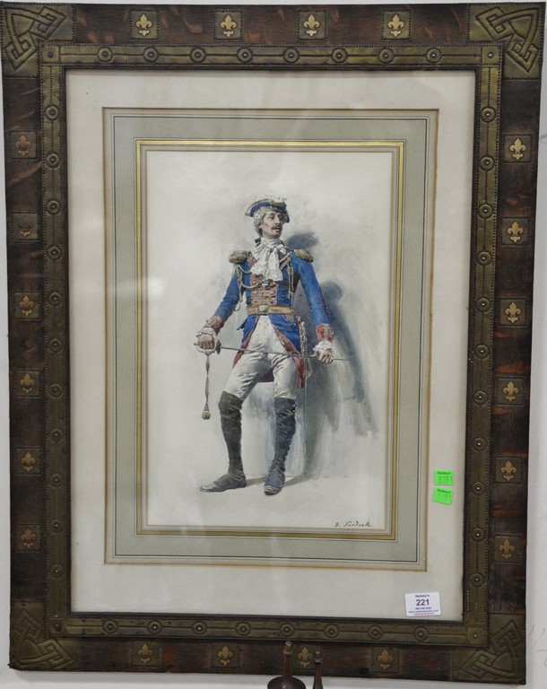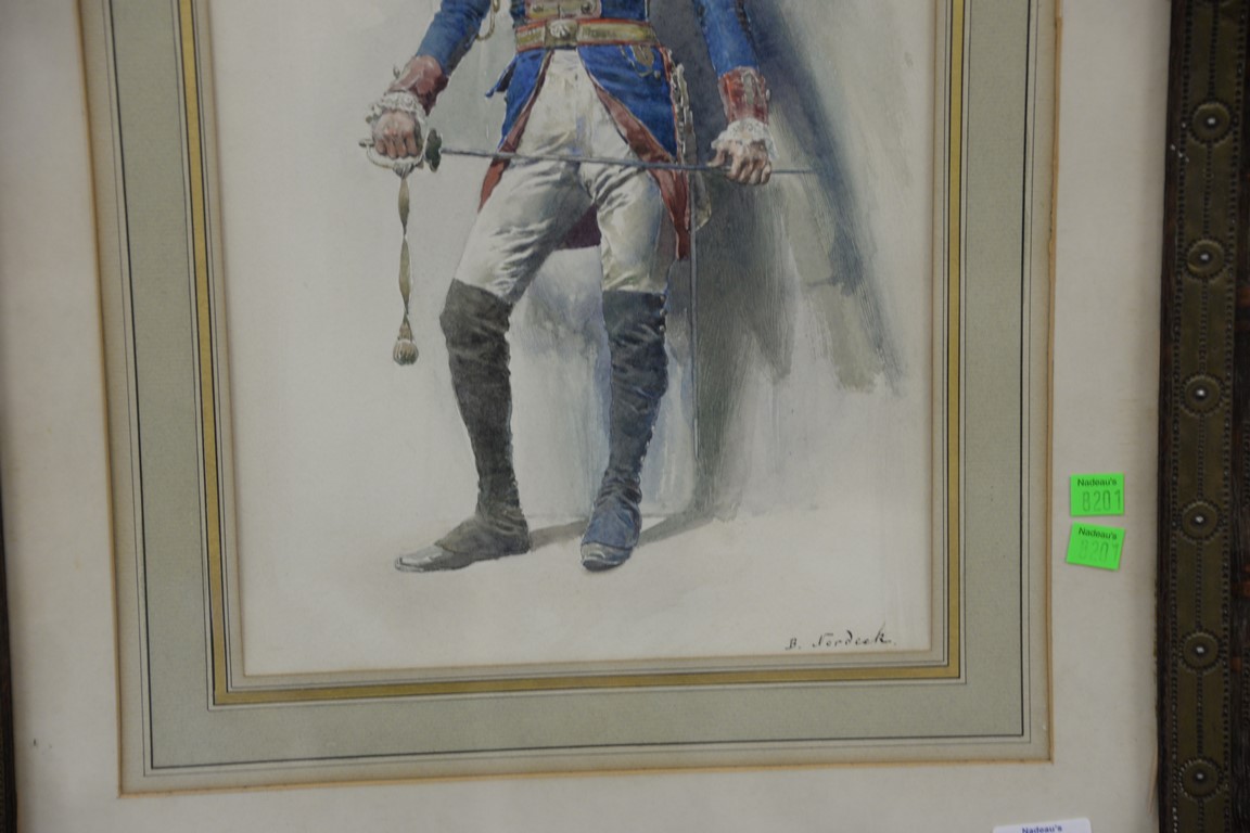 Lot 221: Nordeck watercolor portrait of a soldier signed lower right B. Nordeck, sight size 16 1/2 x 10 1/2.
