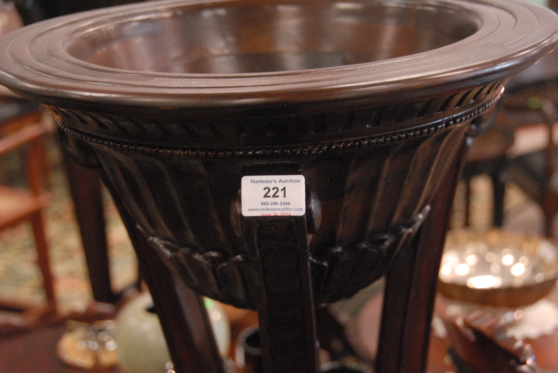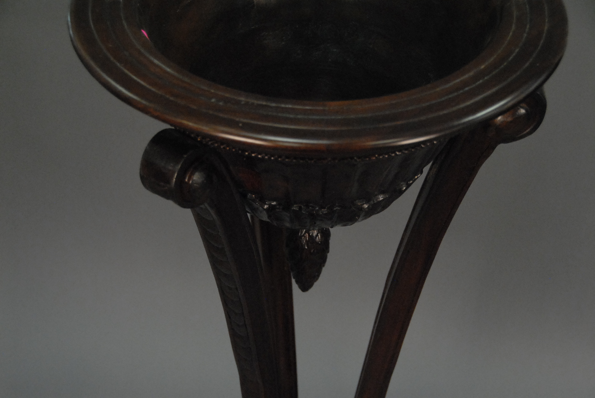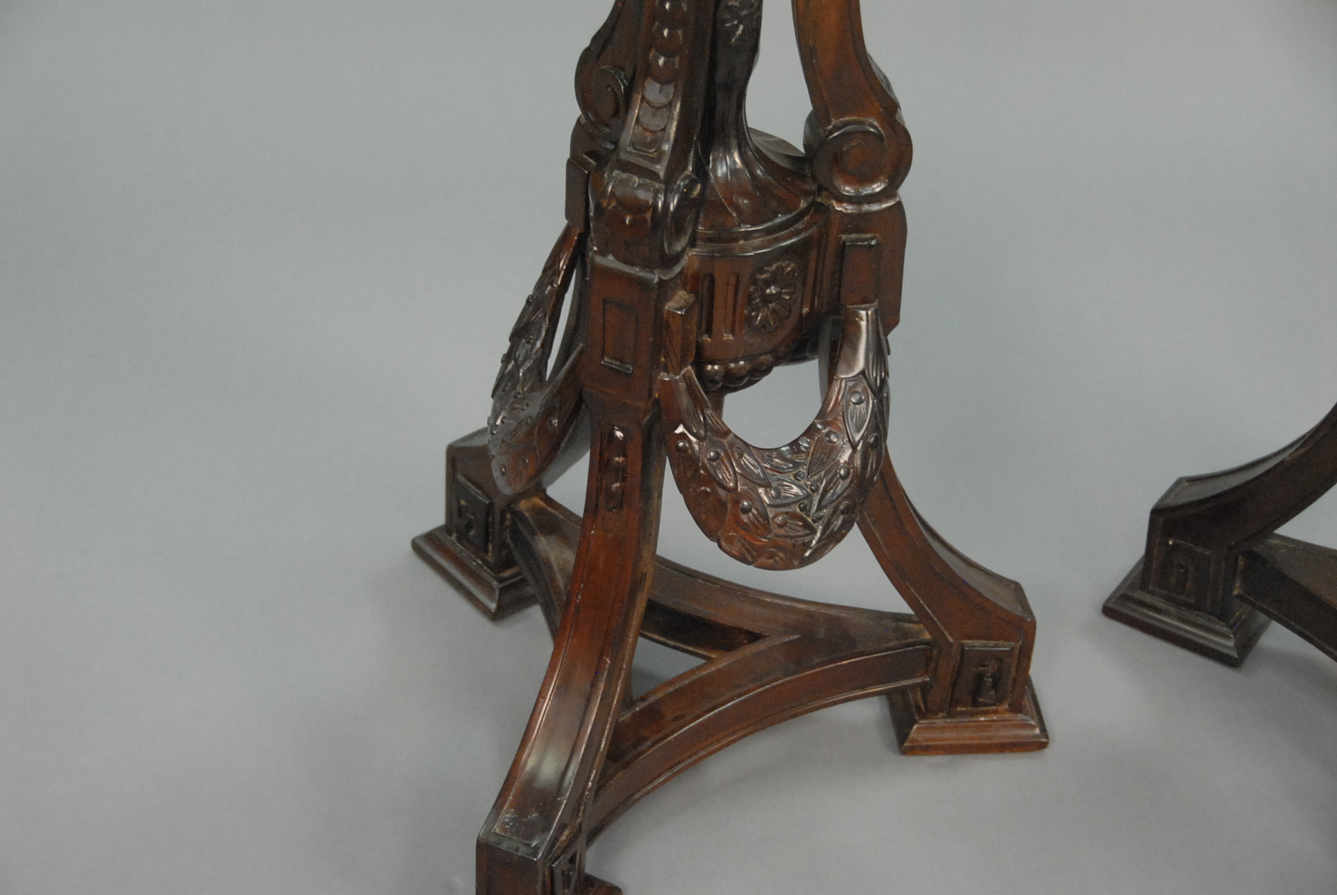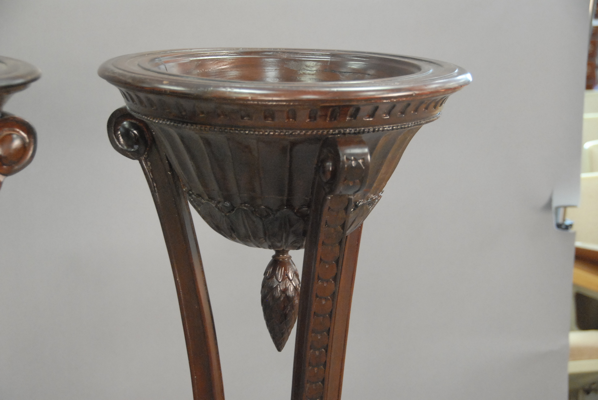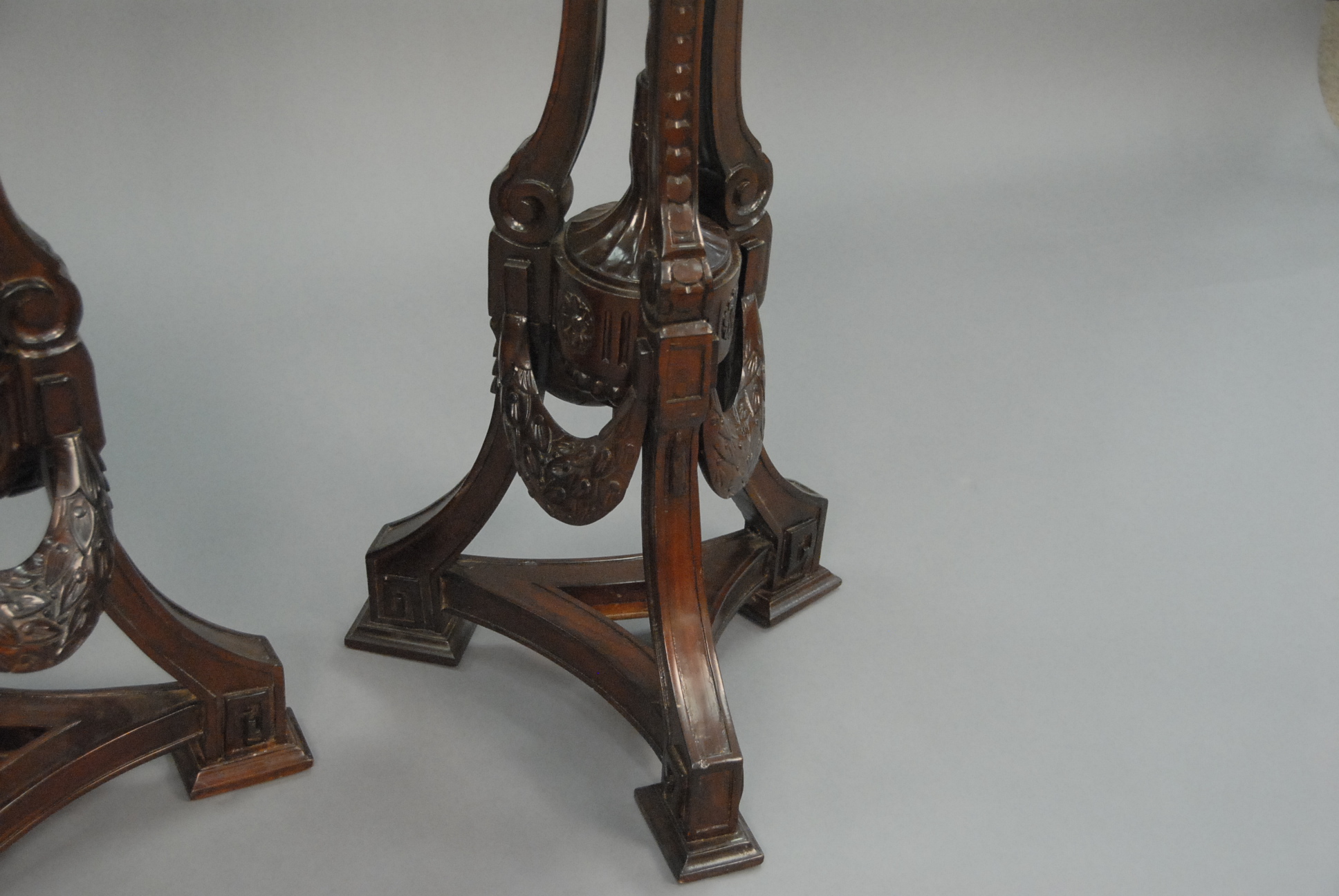 Pair of French style carved mahogany tall plant stands, ht. 56in. dia. of top 16 1/2in.