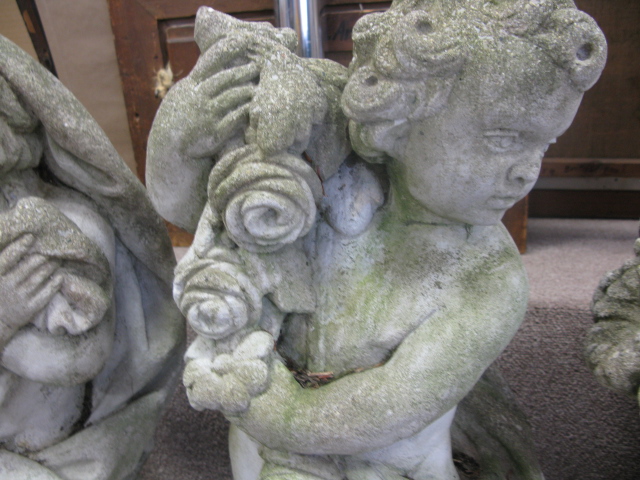 Pair of outdoor putti figures.