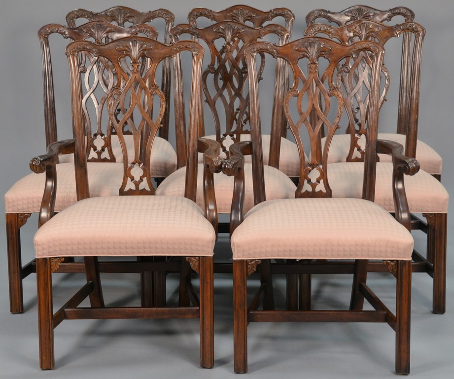 Set of eight Henredon Chippendale style dining chairs, two armchairs and six side chairs.