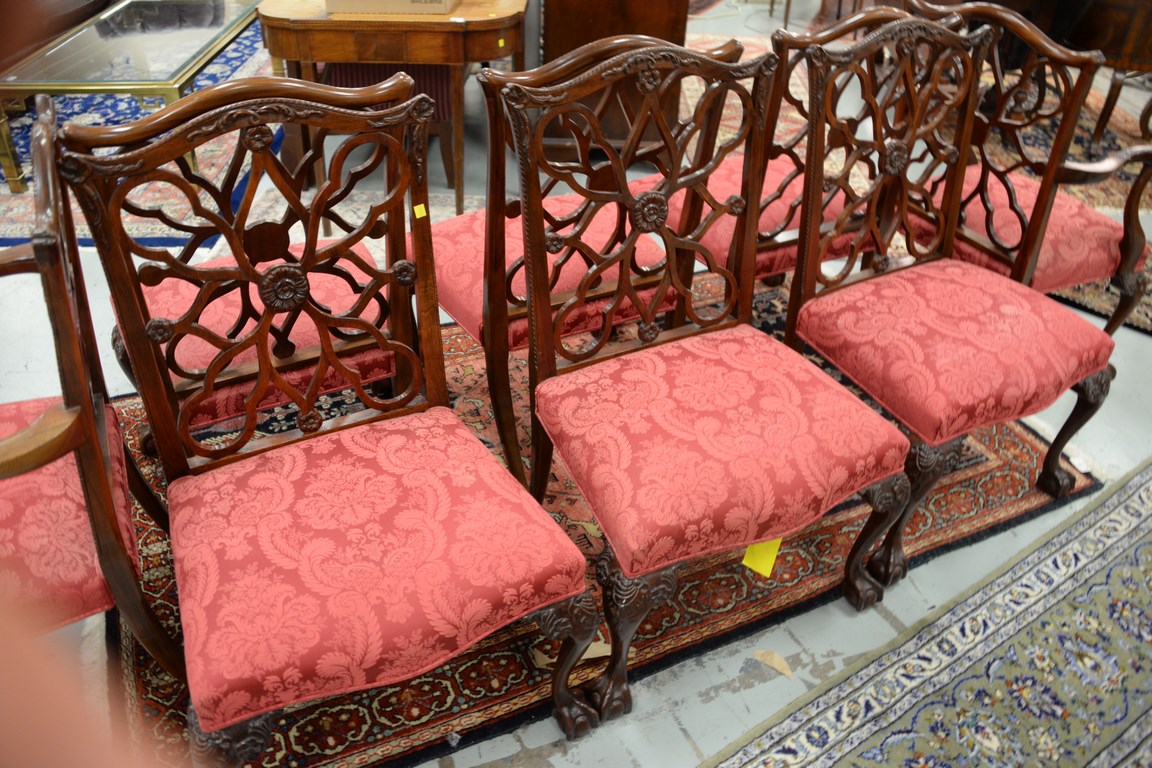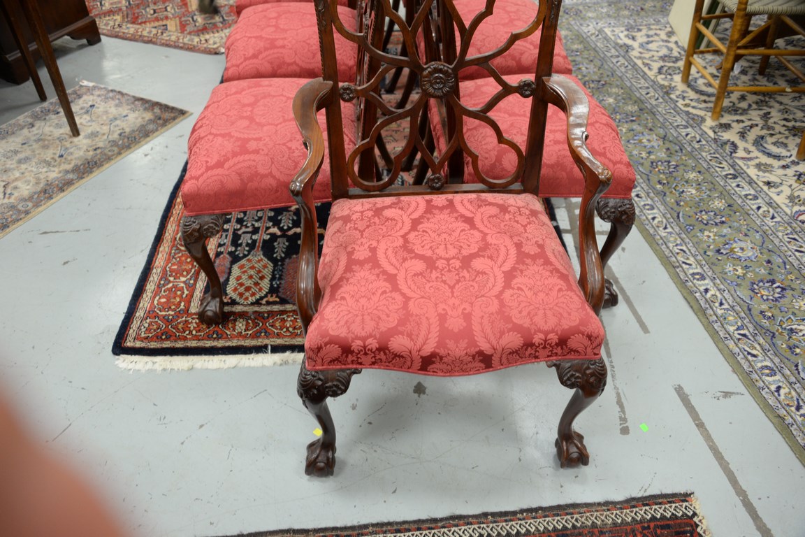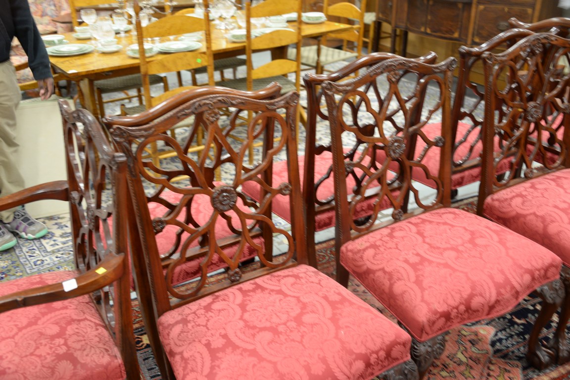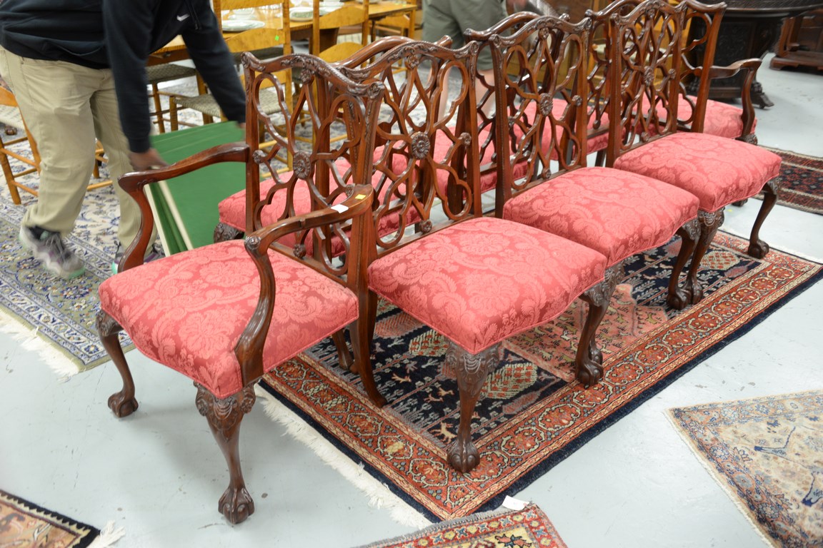 Set of eight mahogany Chippendale style chairs with ball and claw feet.