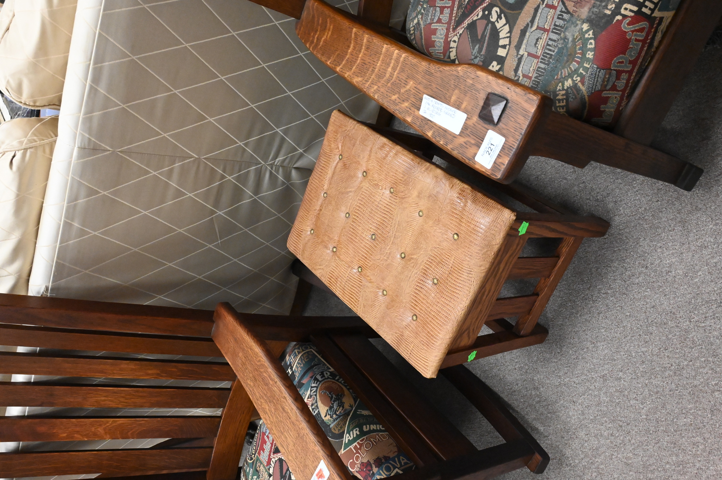Lot 221: Two Arts and Crafts Mission Rockers and a Footstool