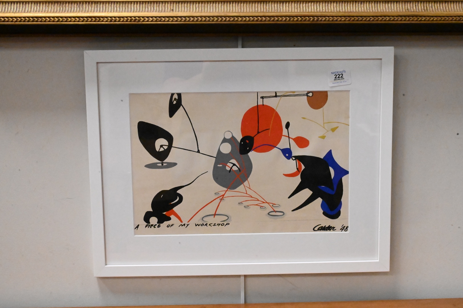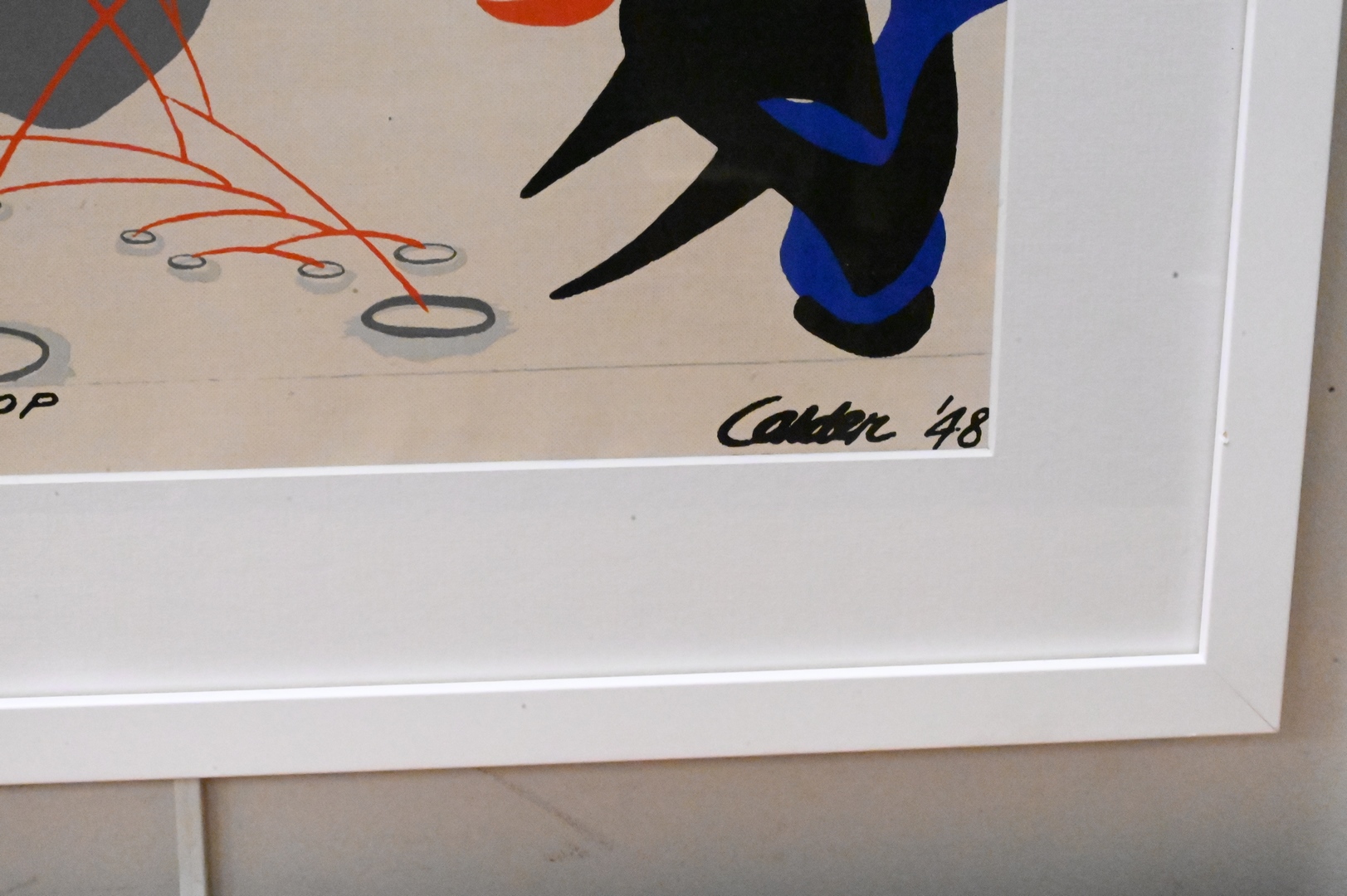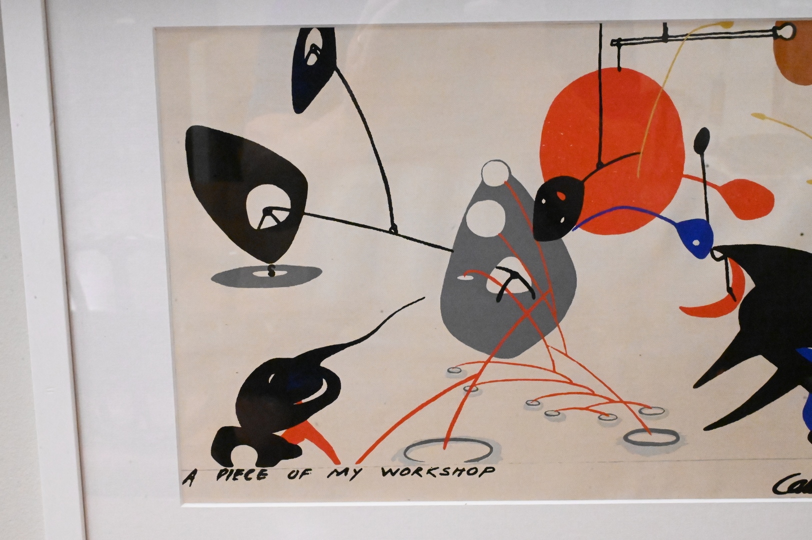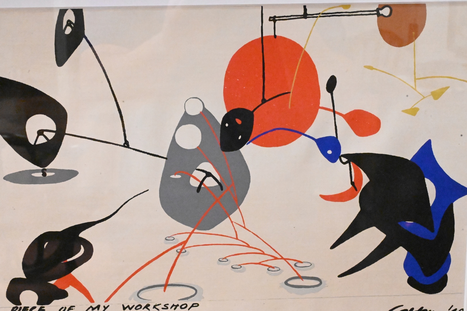 Alexander Calder (1898 – 1976), “A Piece Of My Workshop”, original silkscreen on canvas, signed “Calder ’48” on lower right, size 9 3/4″ x 14 3/4″.