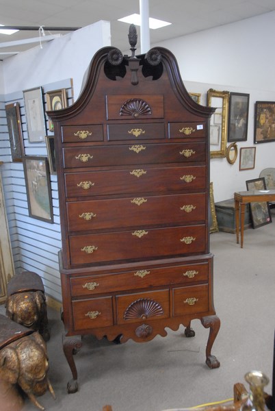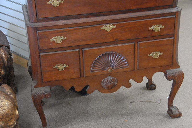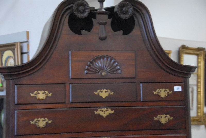 Custom mahogany Chippendale style highboy with full bonnet top. ht. 90in. wd. 42in.