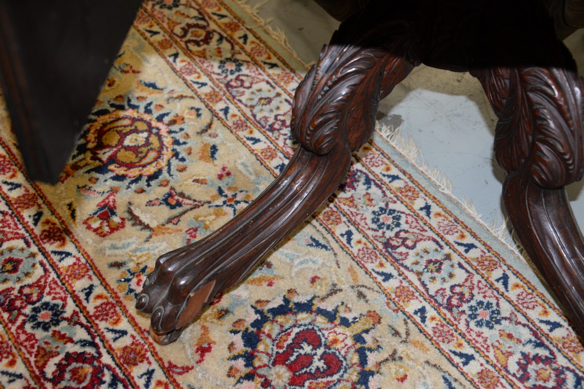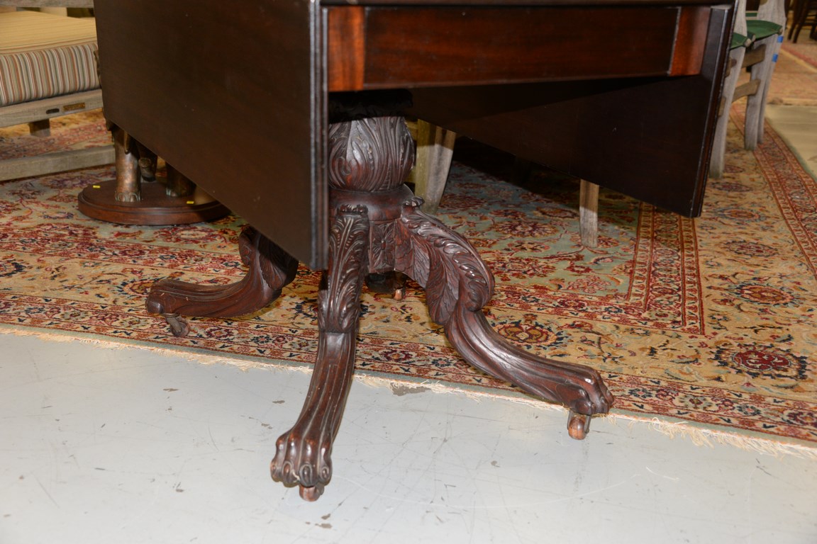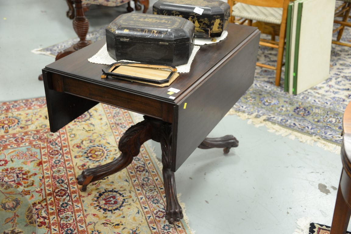 Federal mahogany paw foot drop leaf table, circa 1840, ht. 27 in. opens: 22 x 57.