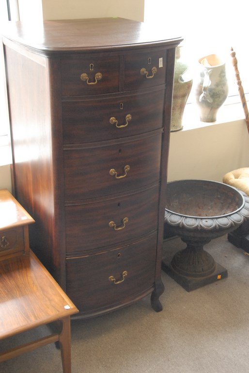 Mahogany lingerie chest, two over four drawer, ht. 48 in. wd. 23in.