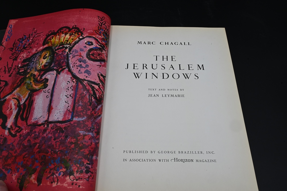 Marc Chagall, The Jerusalem Windows, to include two original lithographs, “Test”, and “Note” by Jean Leymarie published by George Braziller in Association with Horizon Magazine 1962.