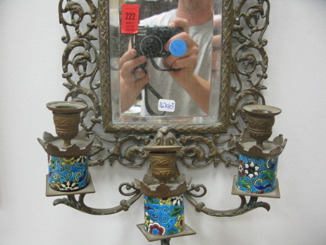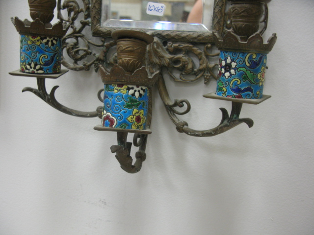Pair of brass and enameled mirrored sconces from the estate of Broadway actress Leta Gold