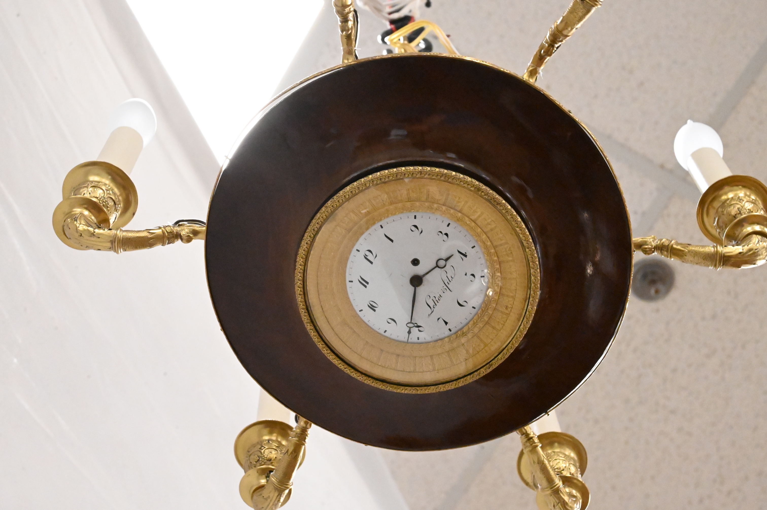 Rare Six-Arm Gilt-Bronze Chandelier with Clock