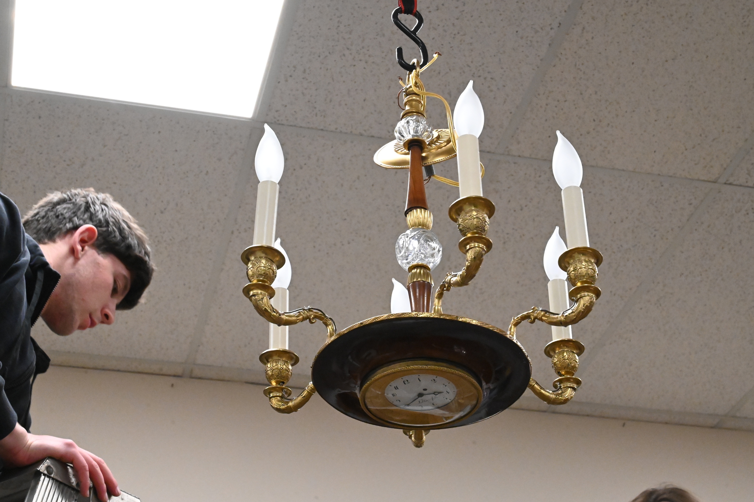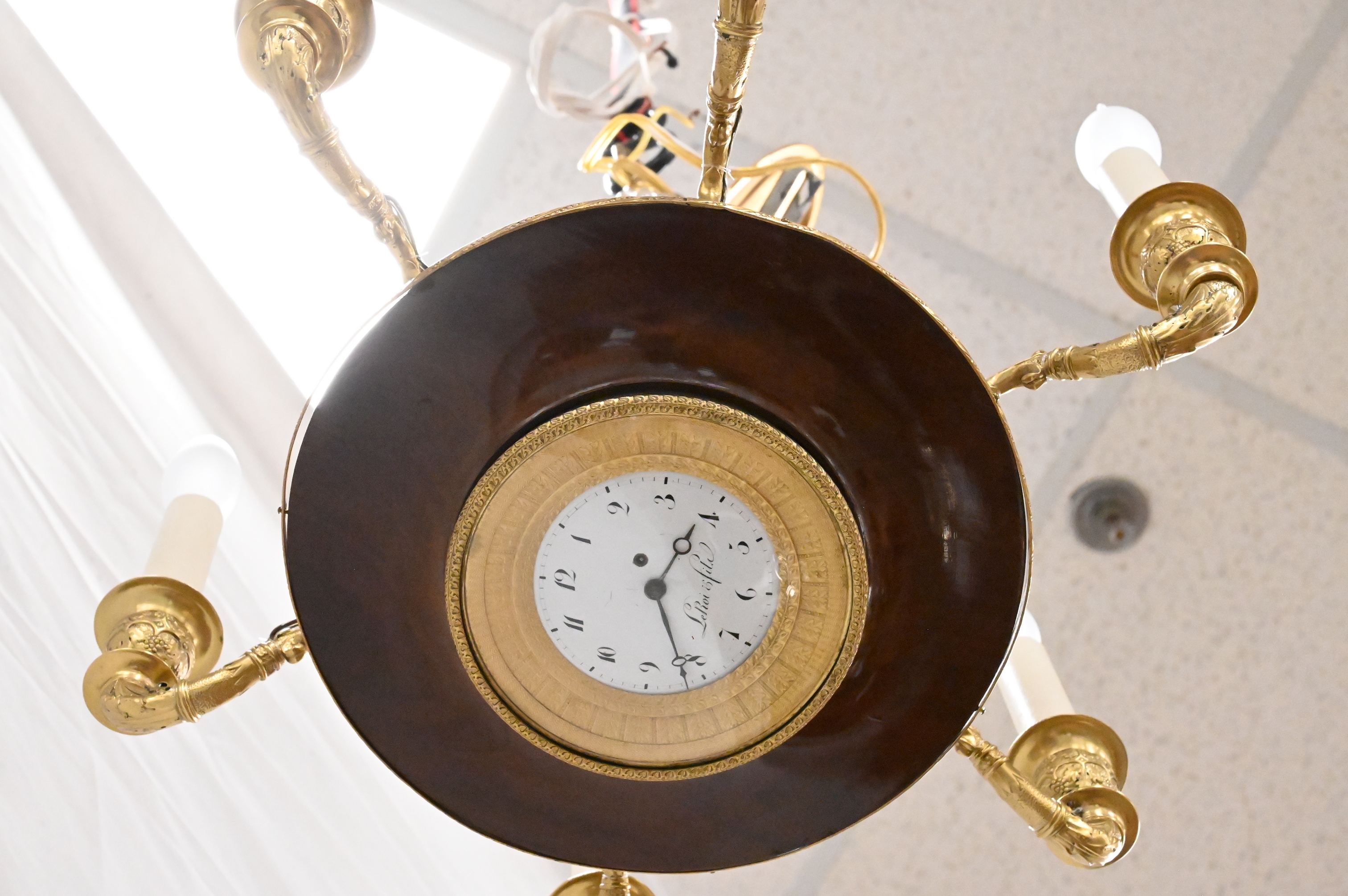 Lot 222: Rare Six-Arm Gilt-Bronze Chandelier with Clock
