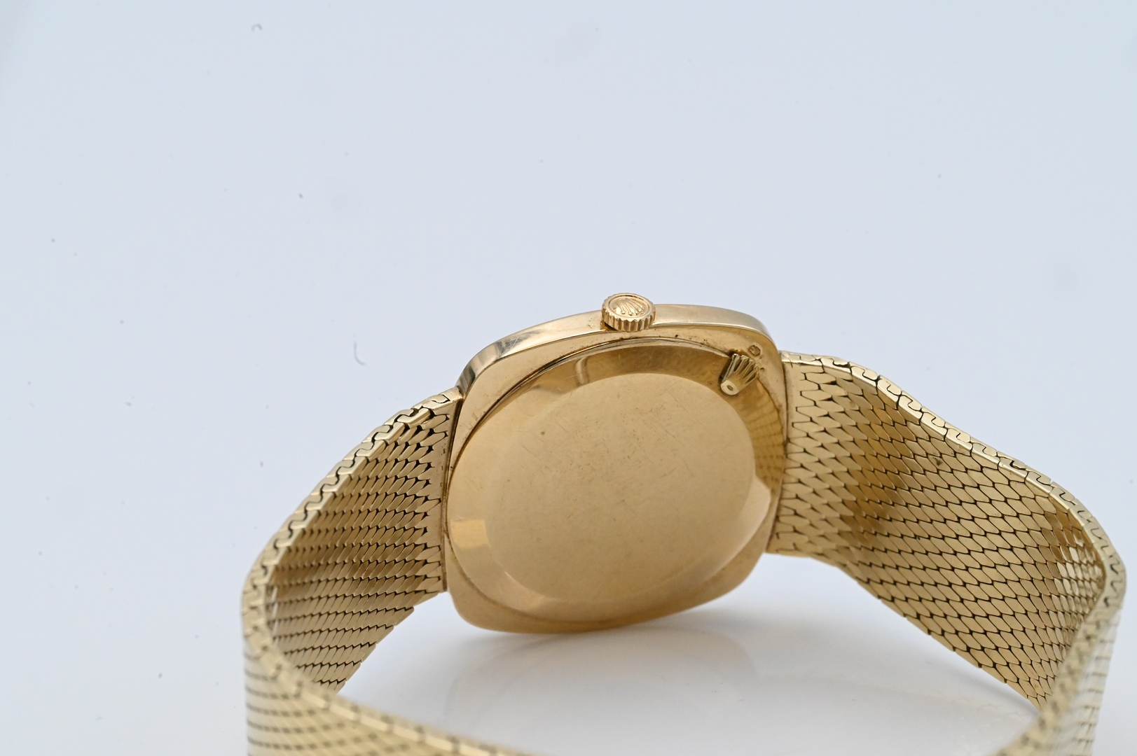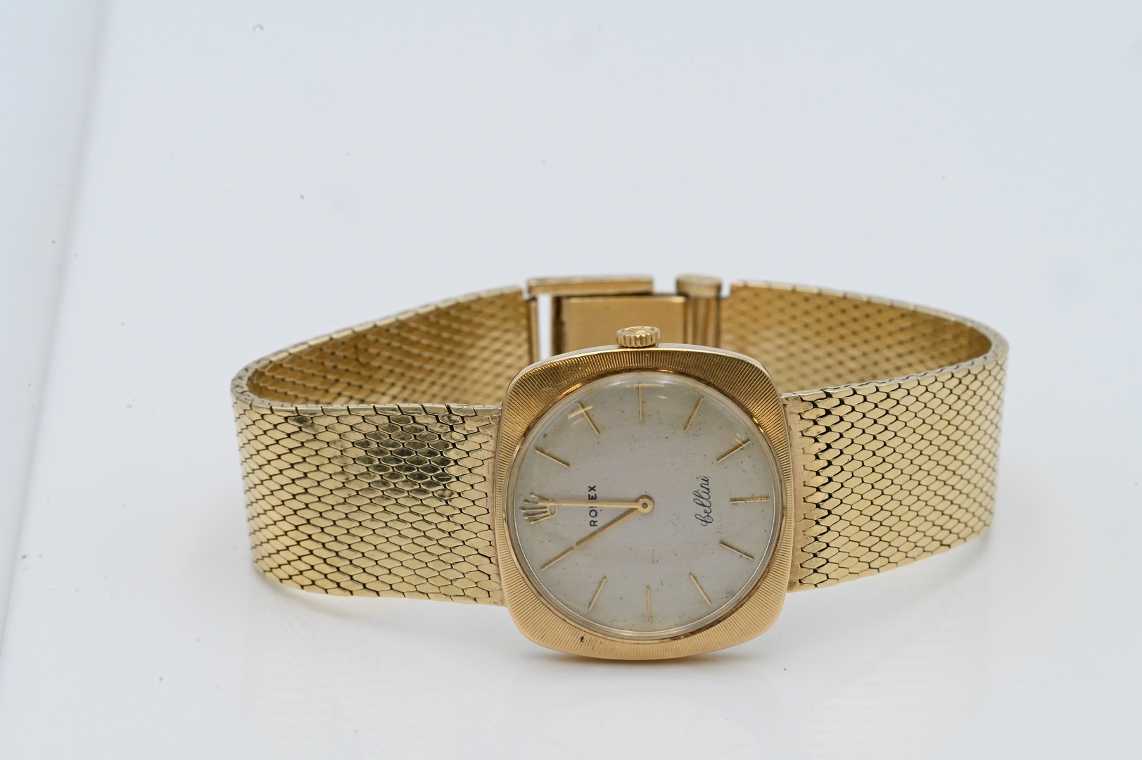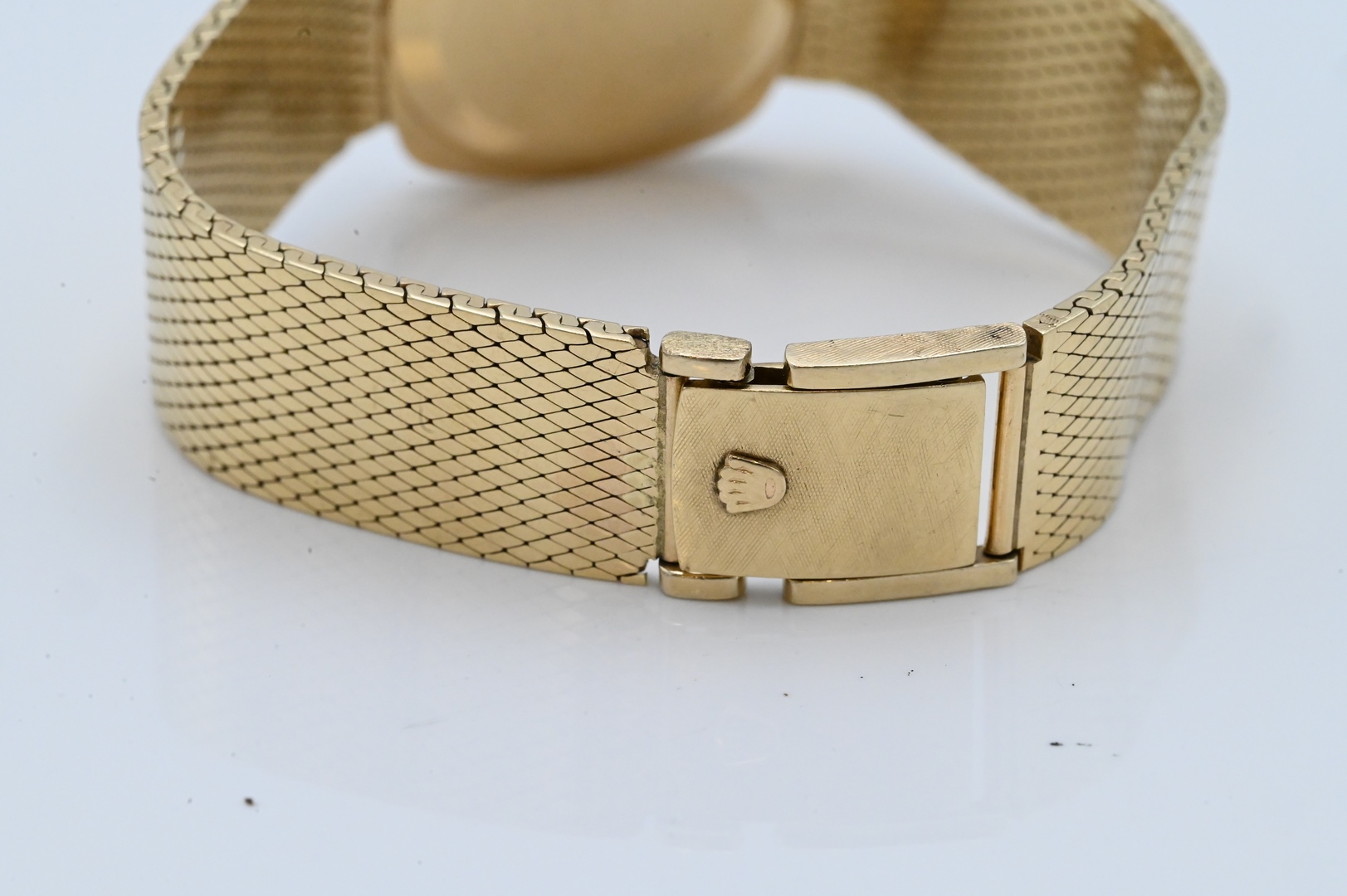 Rolex Cellini 14 Karat Gold Men’s Wristwatch having mesh gold 14 Karat bracelet total length 8 inches, diameter 30.2 millimeters, 81.4 grams total weight