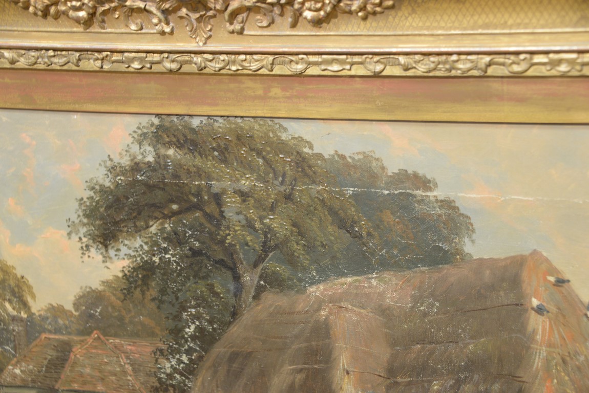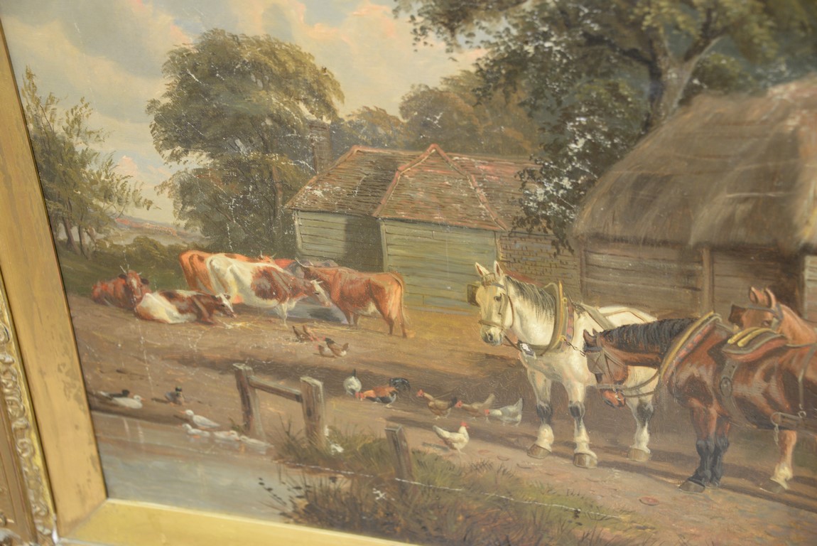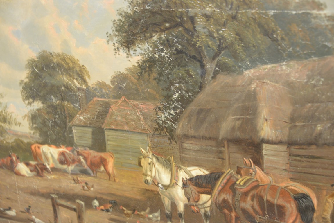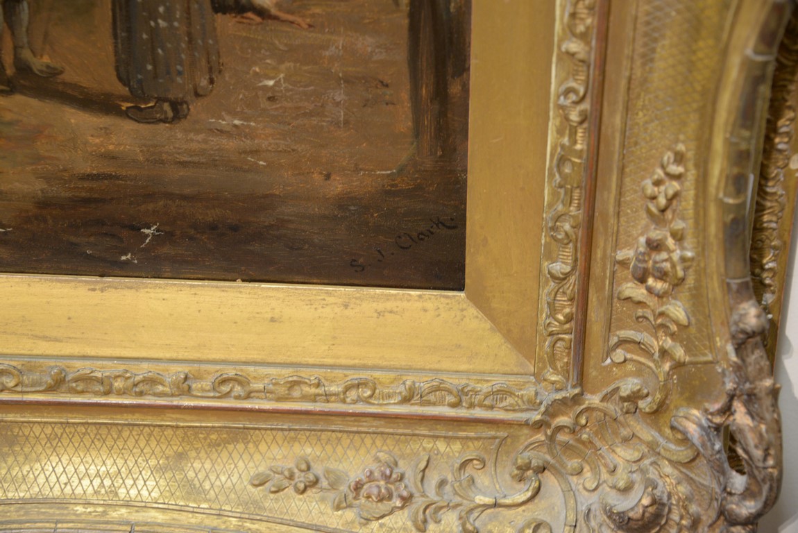 Lot 222: S. J. Clark 19th / 20th Century Farmyard Scene oil on canvas signed lower right: S. J. Clark 20 1/2 x 30