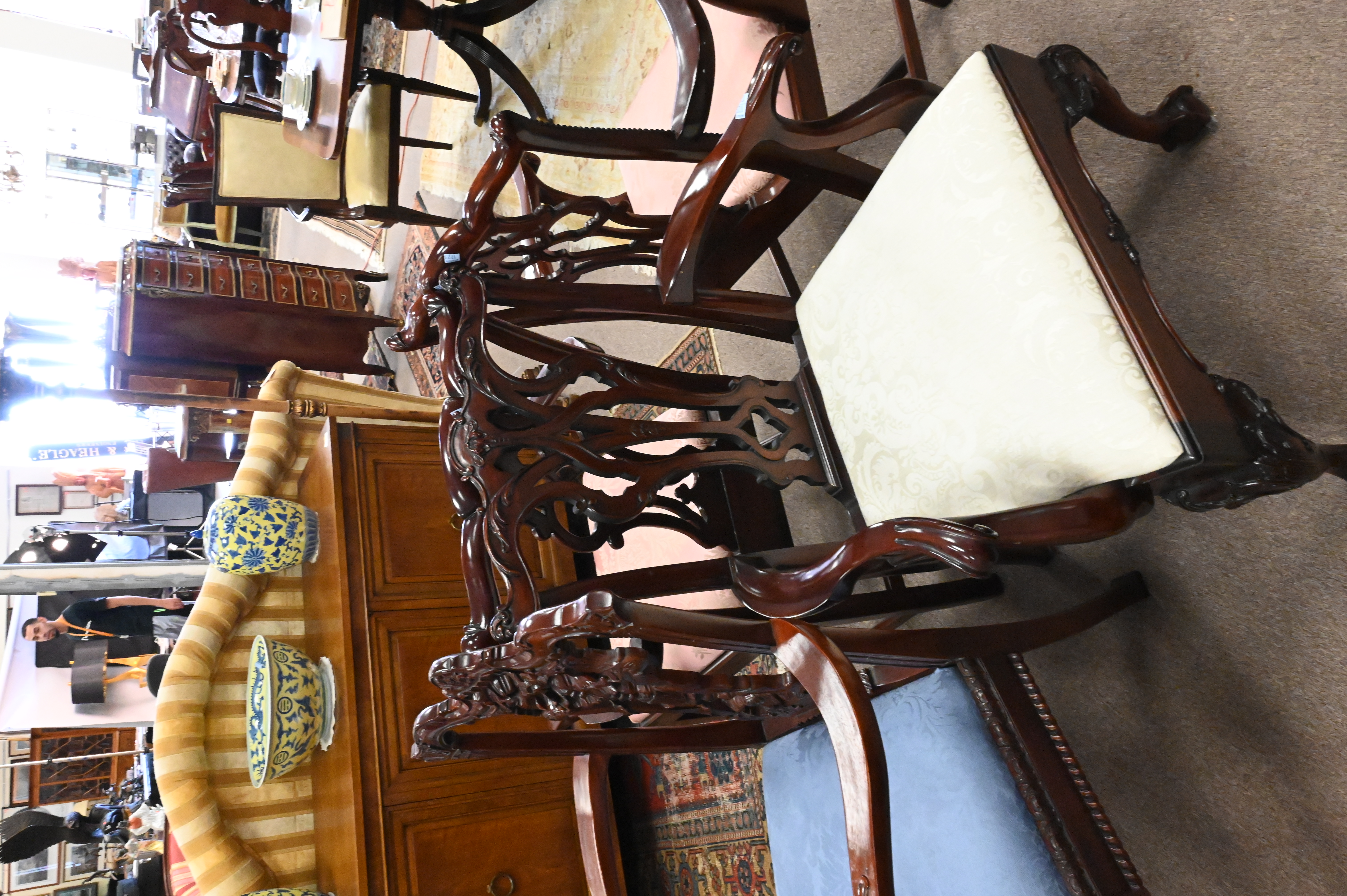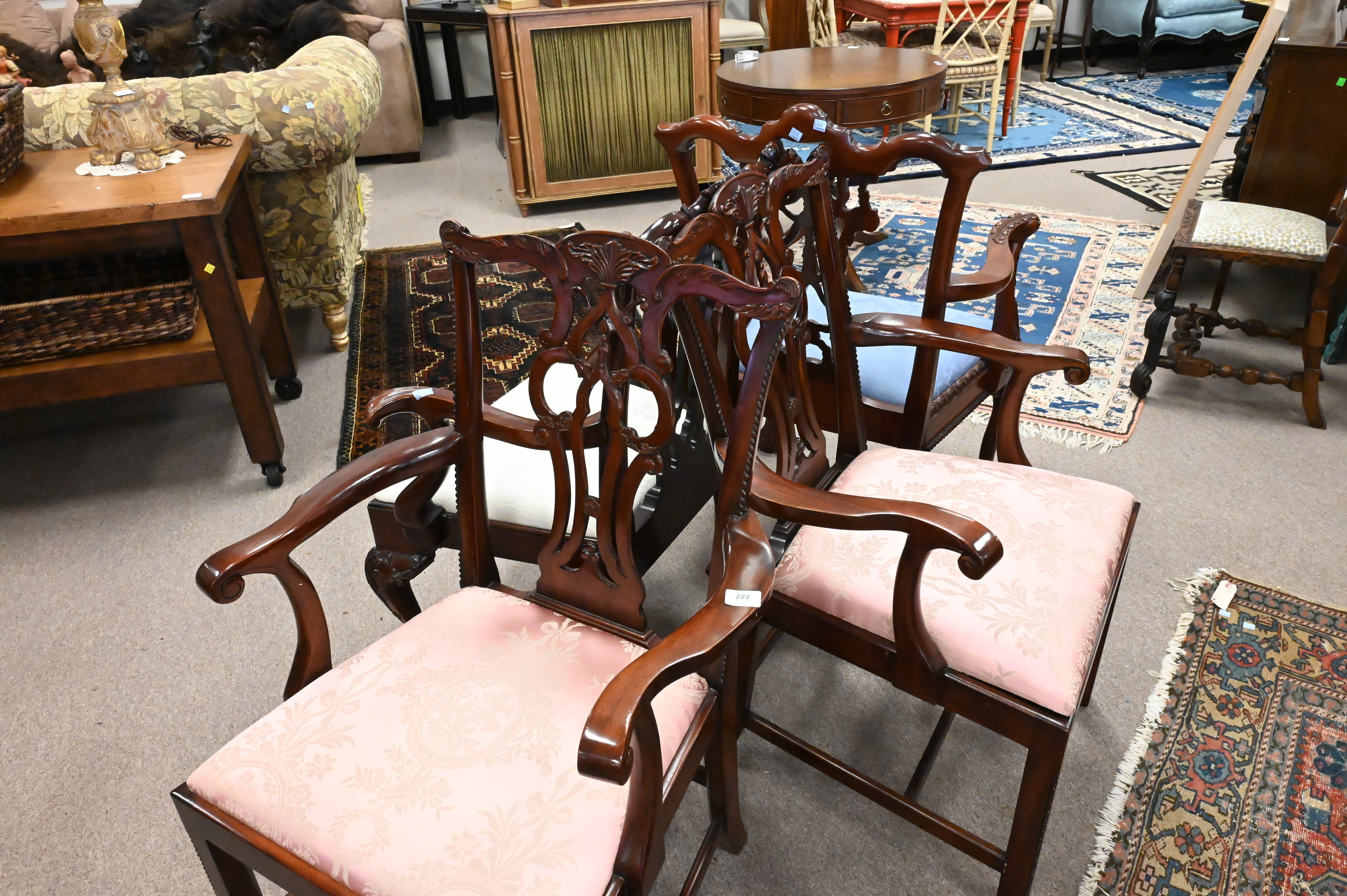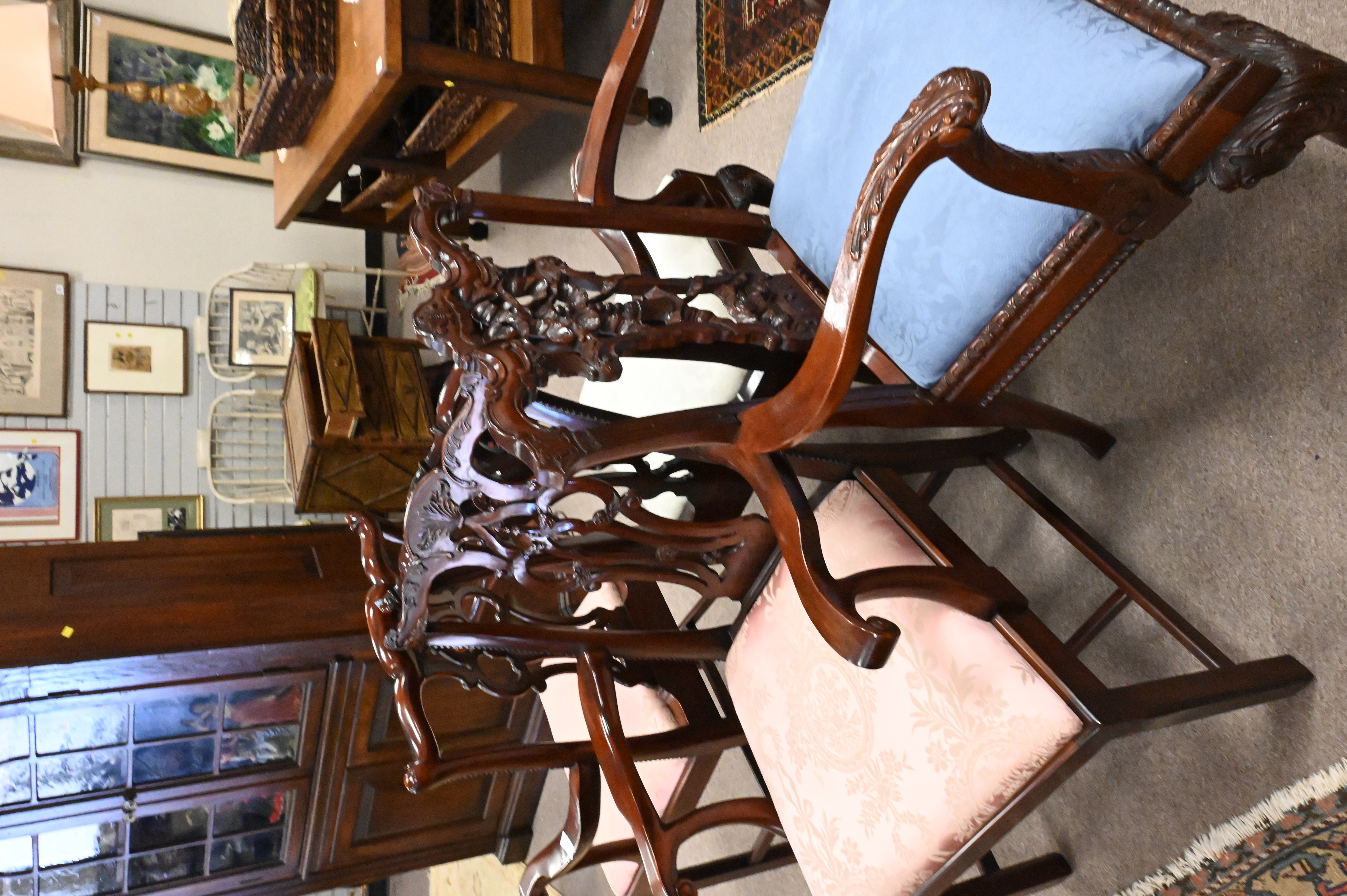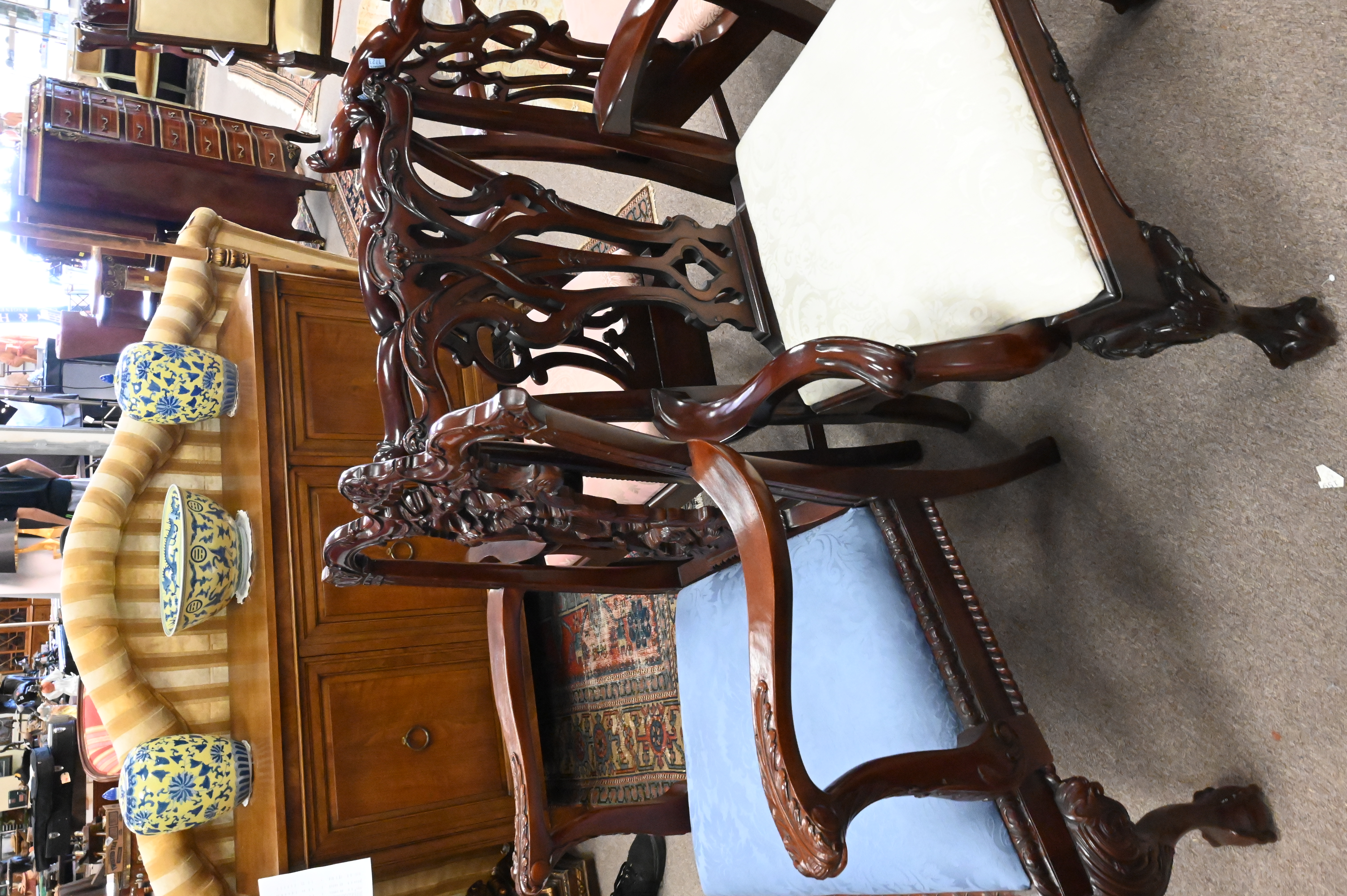 Set of Four Similar Mahogany Chippendale Style Armchairs, all having slip seats, height 39 inches, width 23 inches.