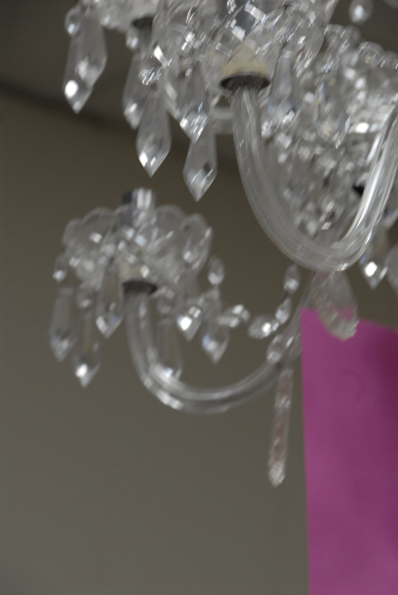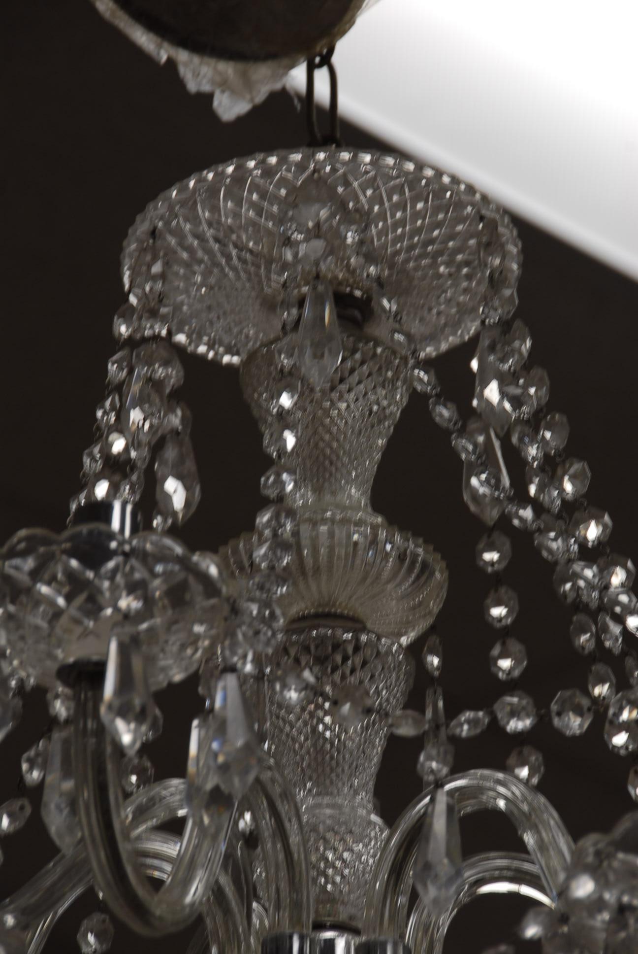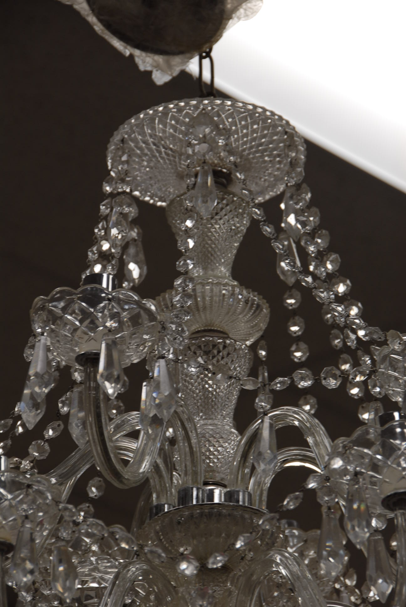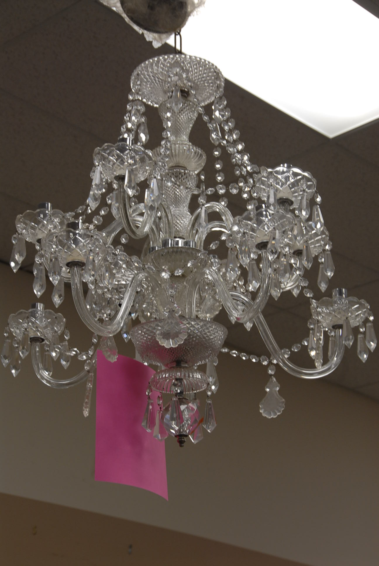 Twelve light crystal chandelier, one arm as is