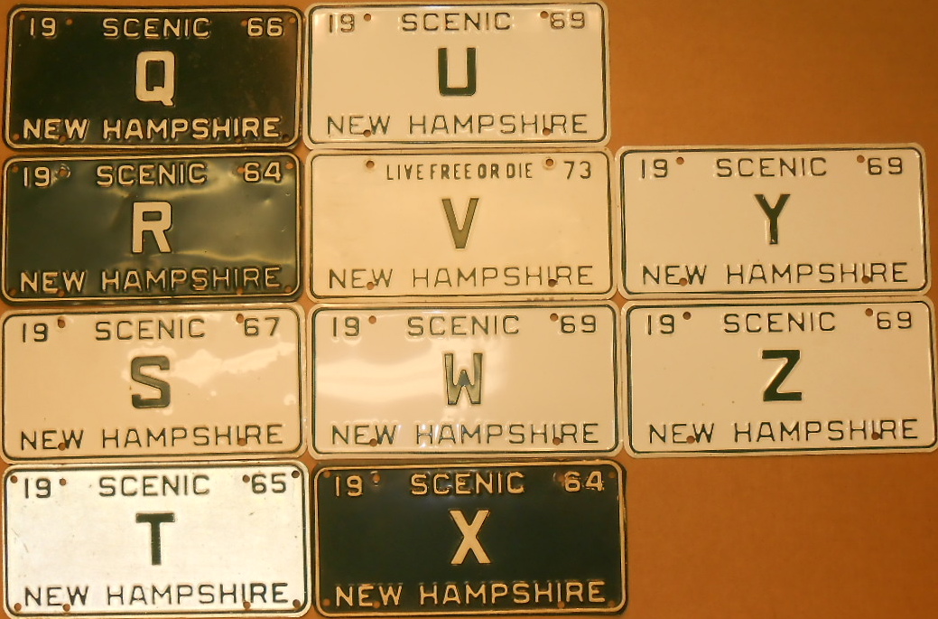 Twenty six NH single letter plates, the complete alphabet, A to Z
