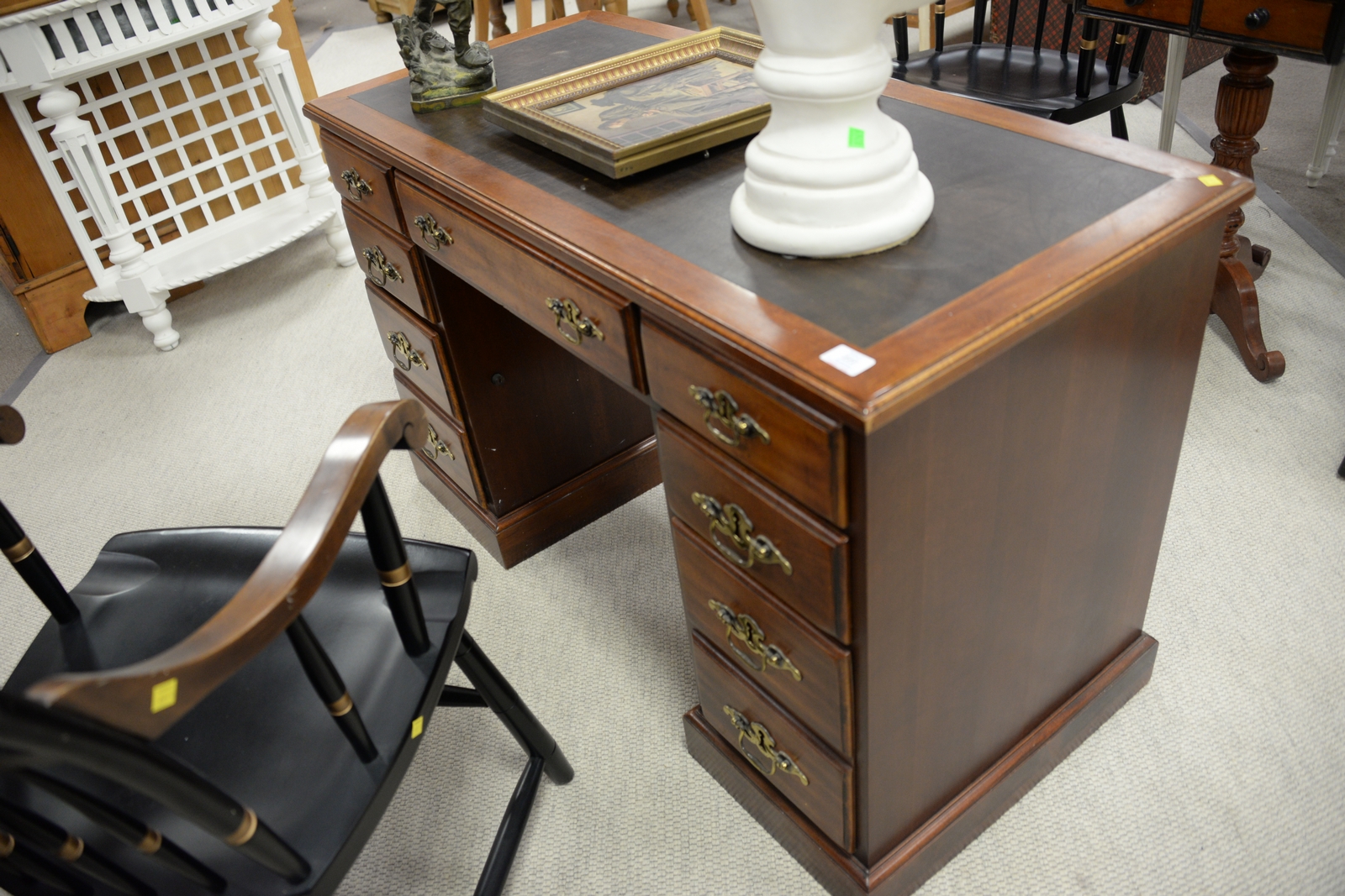 Two piece lot to include a chess board game table and a kneehole desk. table: ht. 30in., top: 19 x 19 and desk: ht. 30in., top: 22 x 48