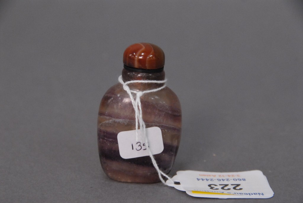 Amethyst lady’s snuff bottle, with agate top, 19th century, ht 2 1/4.