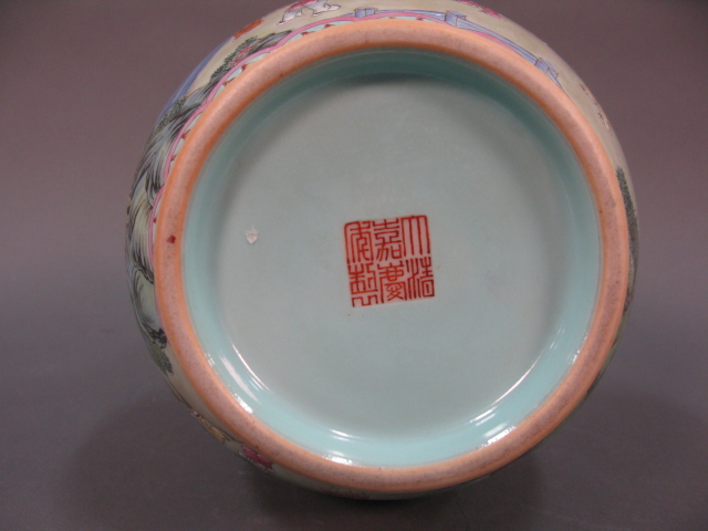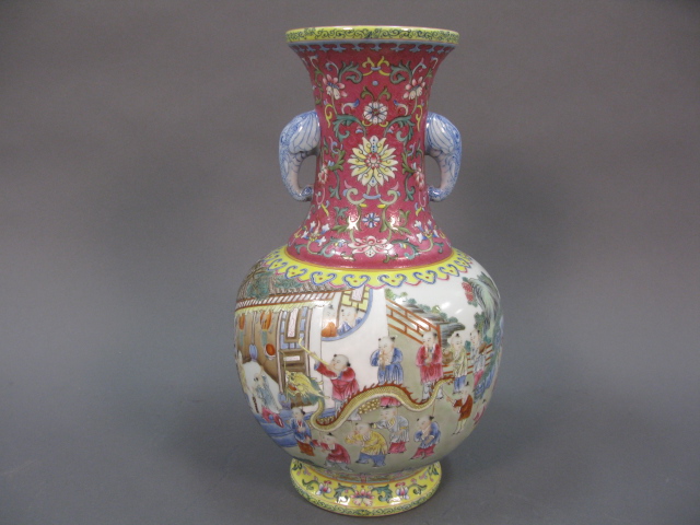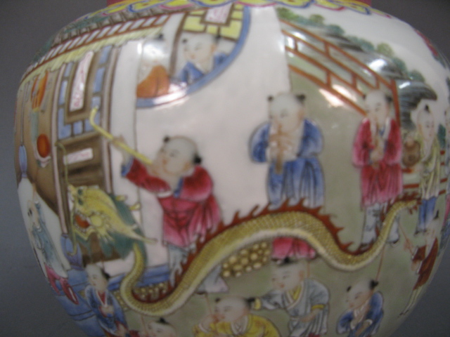 Famille Rose porcelain vase with handles and boys playing design JiaQing mark, 19th Century.