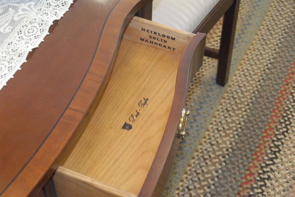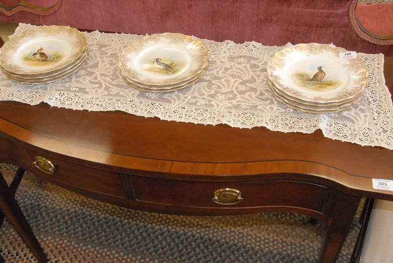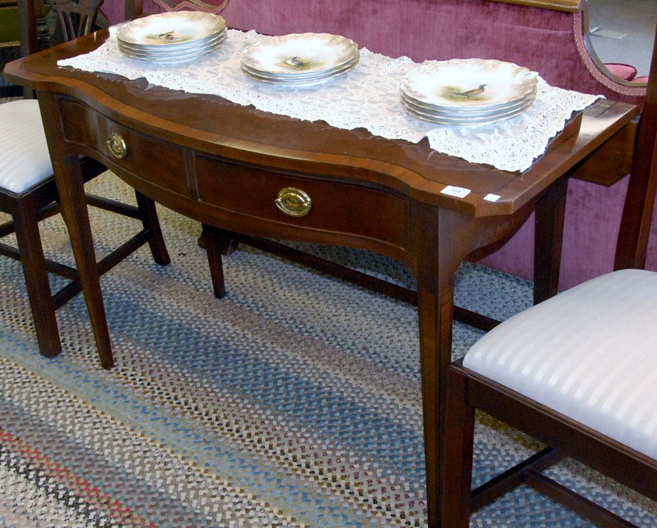 Federal style mahogany server with banded inlaid top and two drawers, ht. 29, wd. 48.