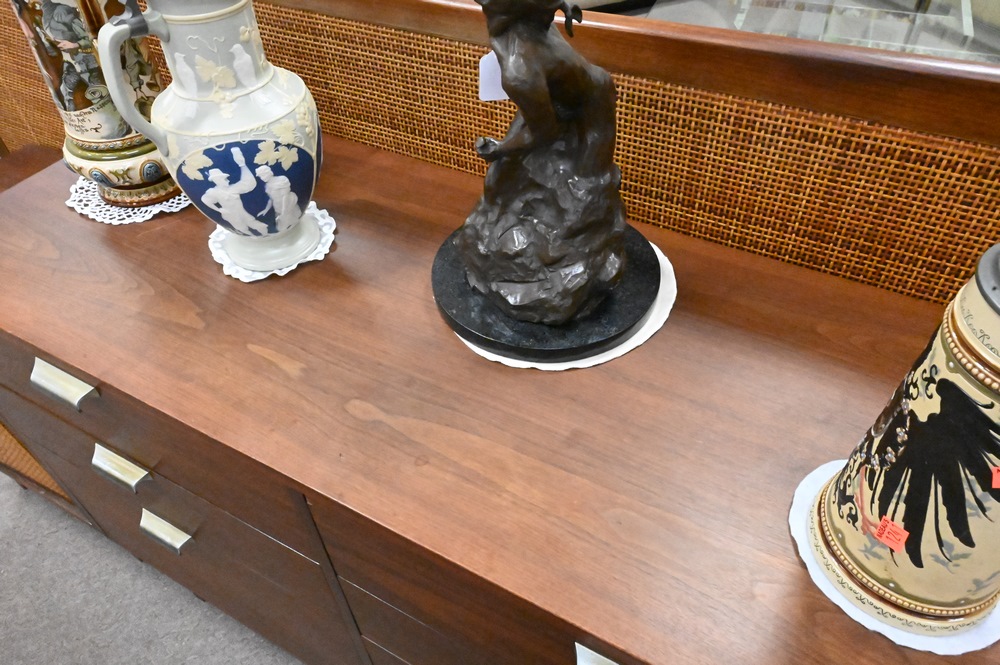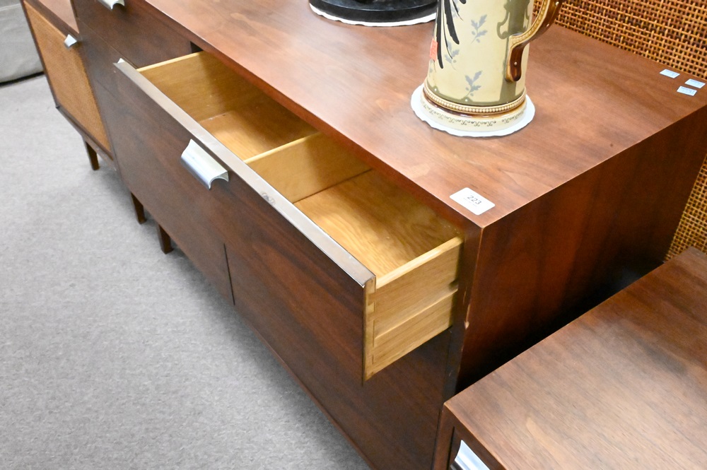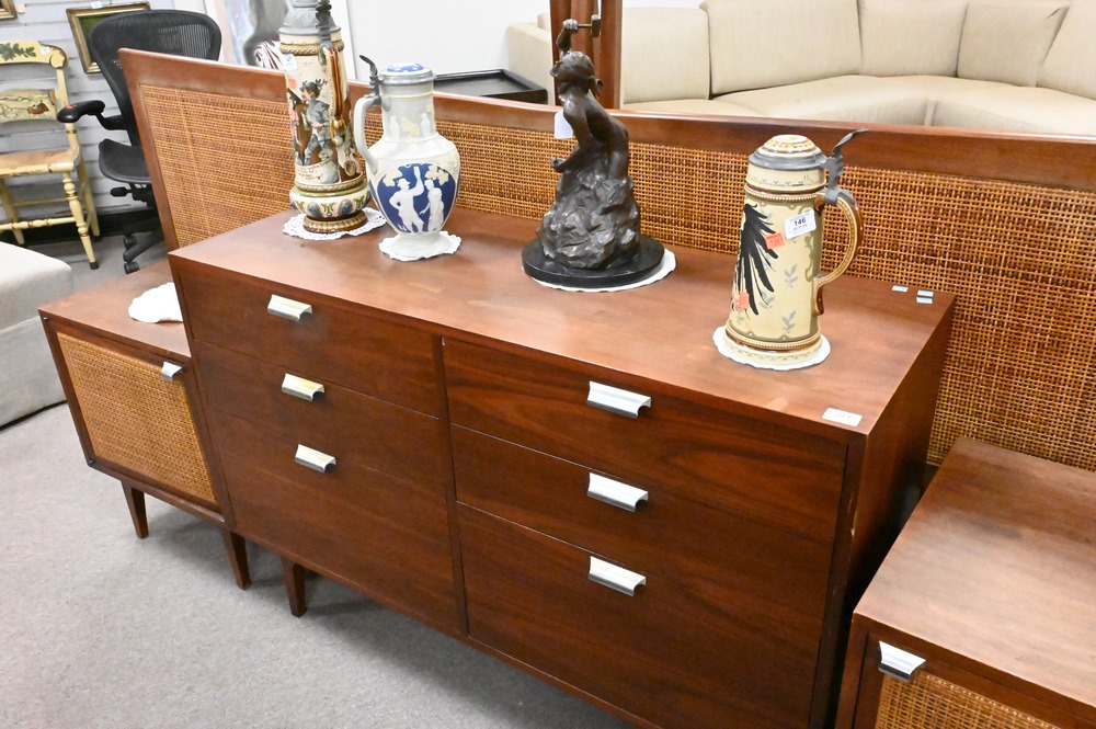 Lot 223: Jens Risom Style Mid Century 1950’s Chest/Credenza, having six drawers, height 32 inches, length 47 3/4 inches, width 18 inches.