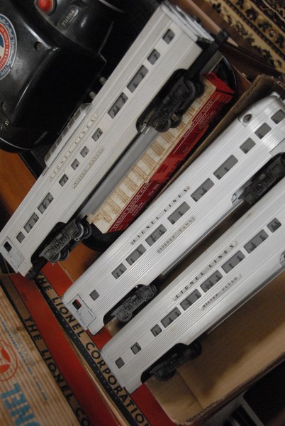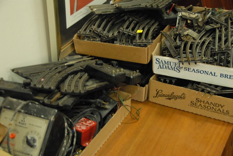 Lot 223: Large group of Lionel trains and tracks, type zw Transformer 7, silver range some with boxes.