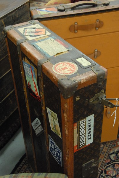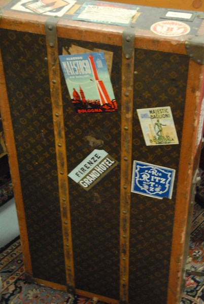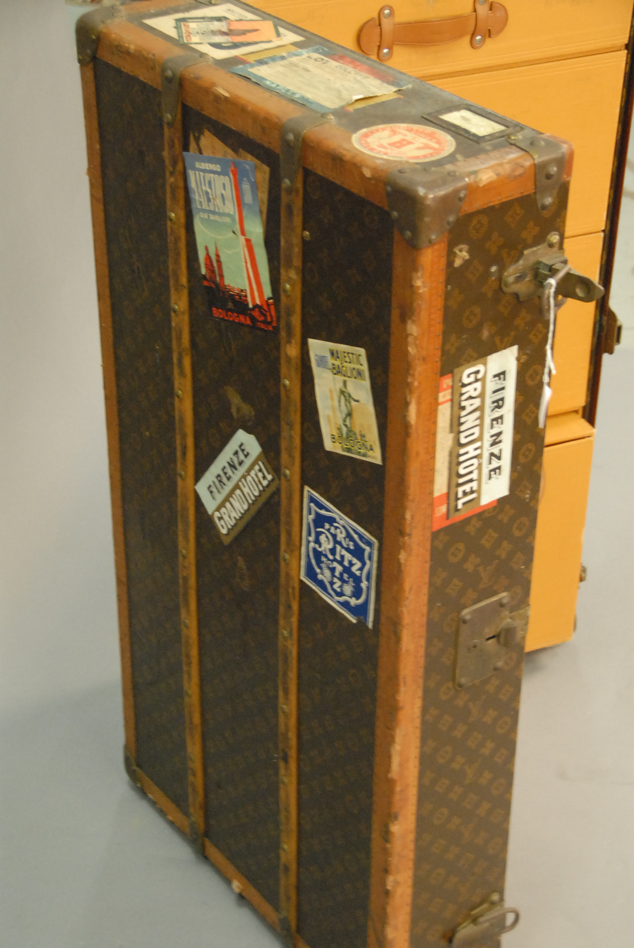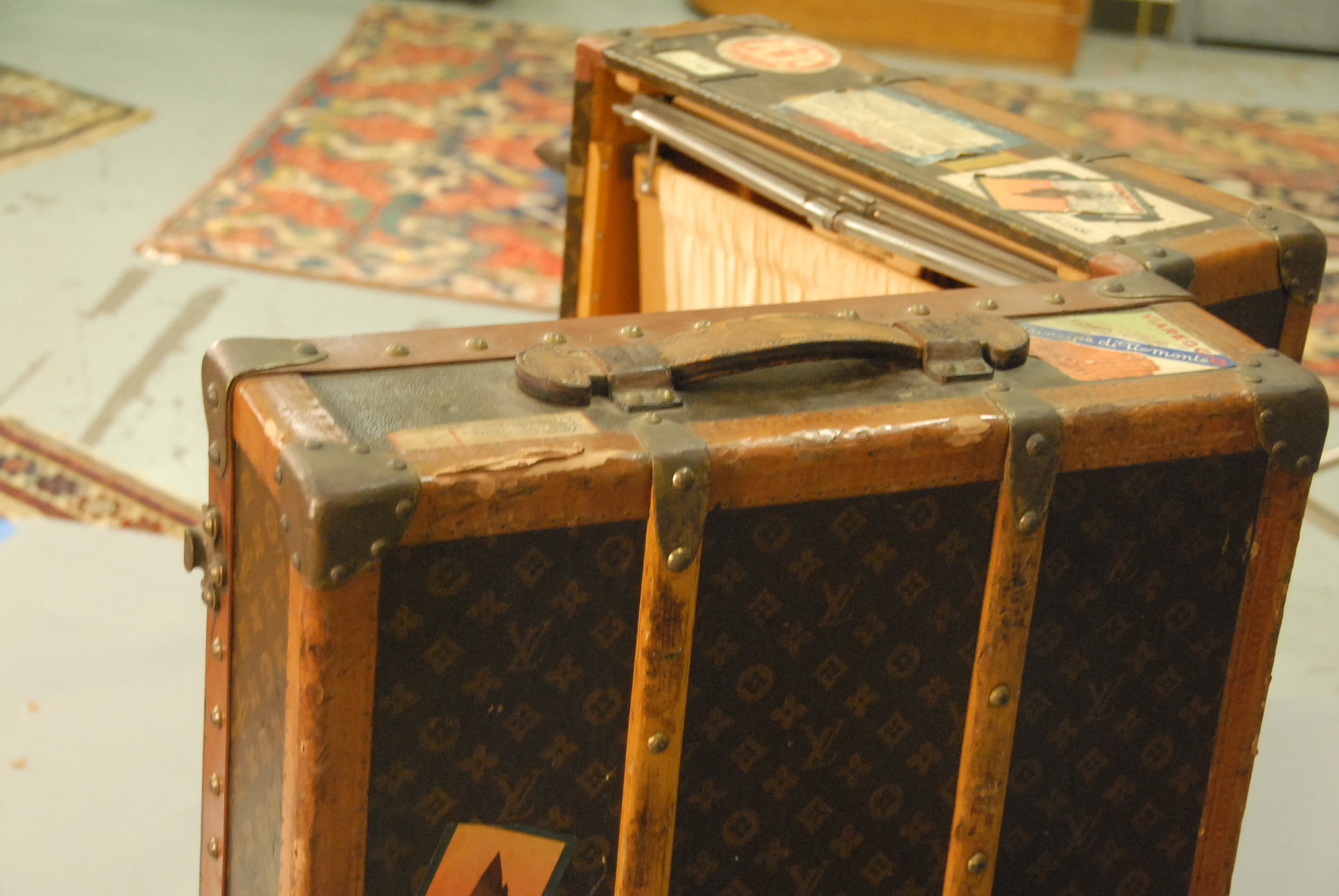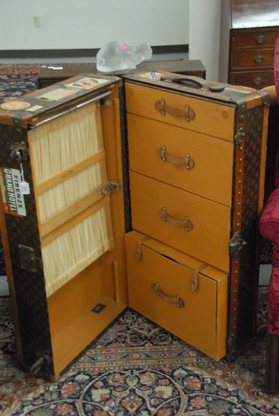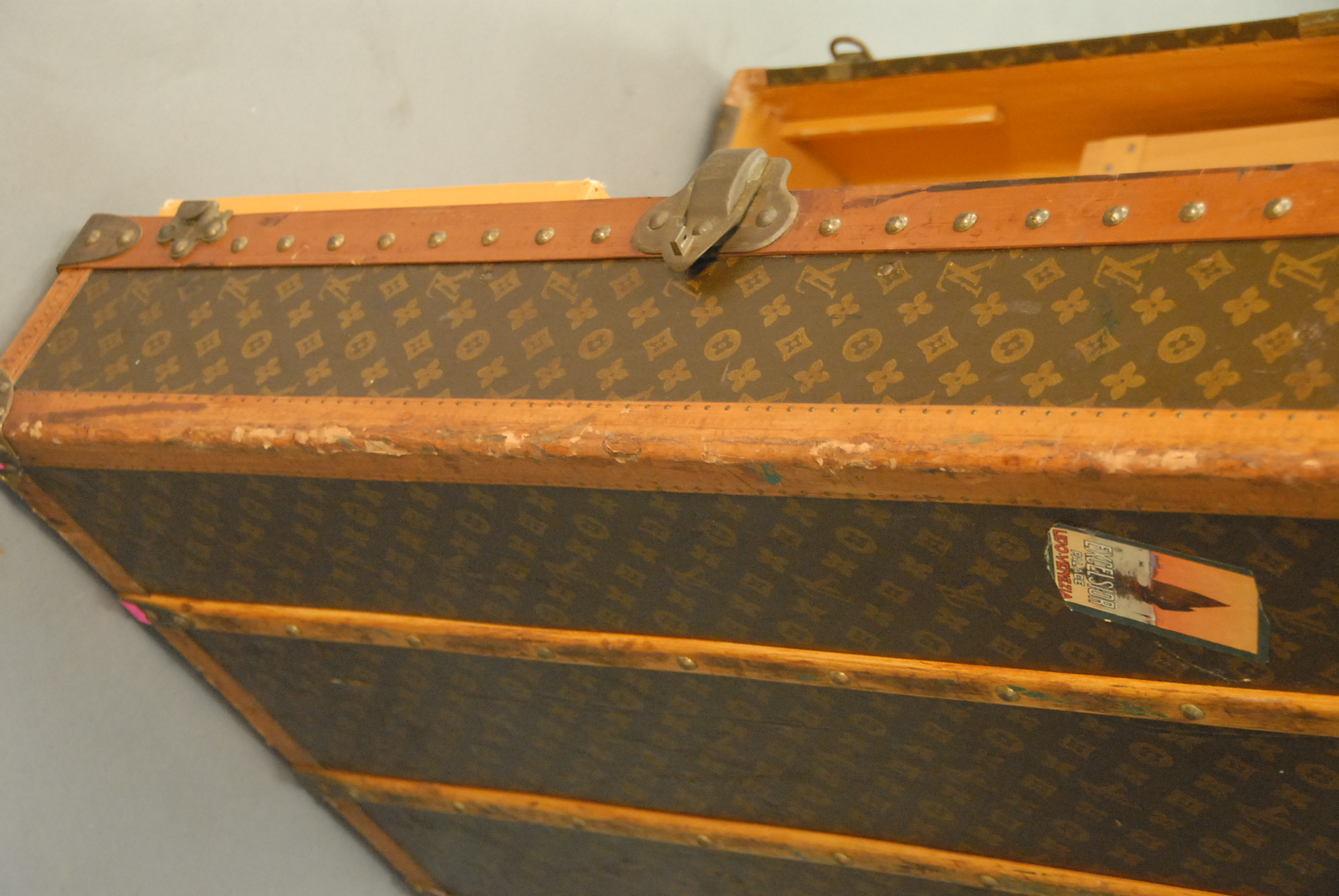 Lot 223: Louis Vuitton steamer trunk, interior with four compartments and hanging section. 13 x 22 x 40