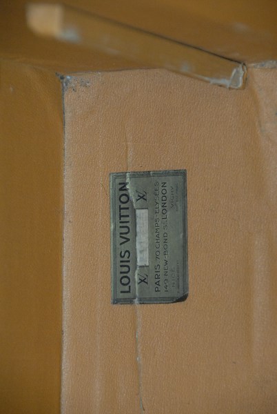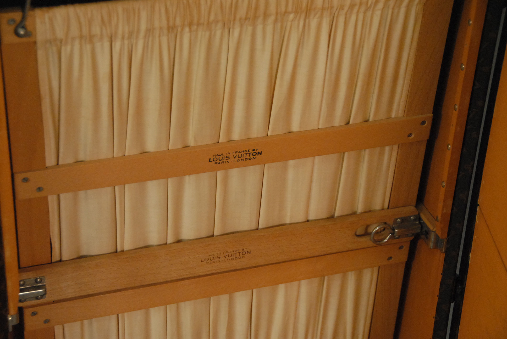 Louis Vuitton steamer trunk, interior with four compartments and hanging section. 13 x 22 x 40