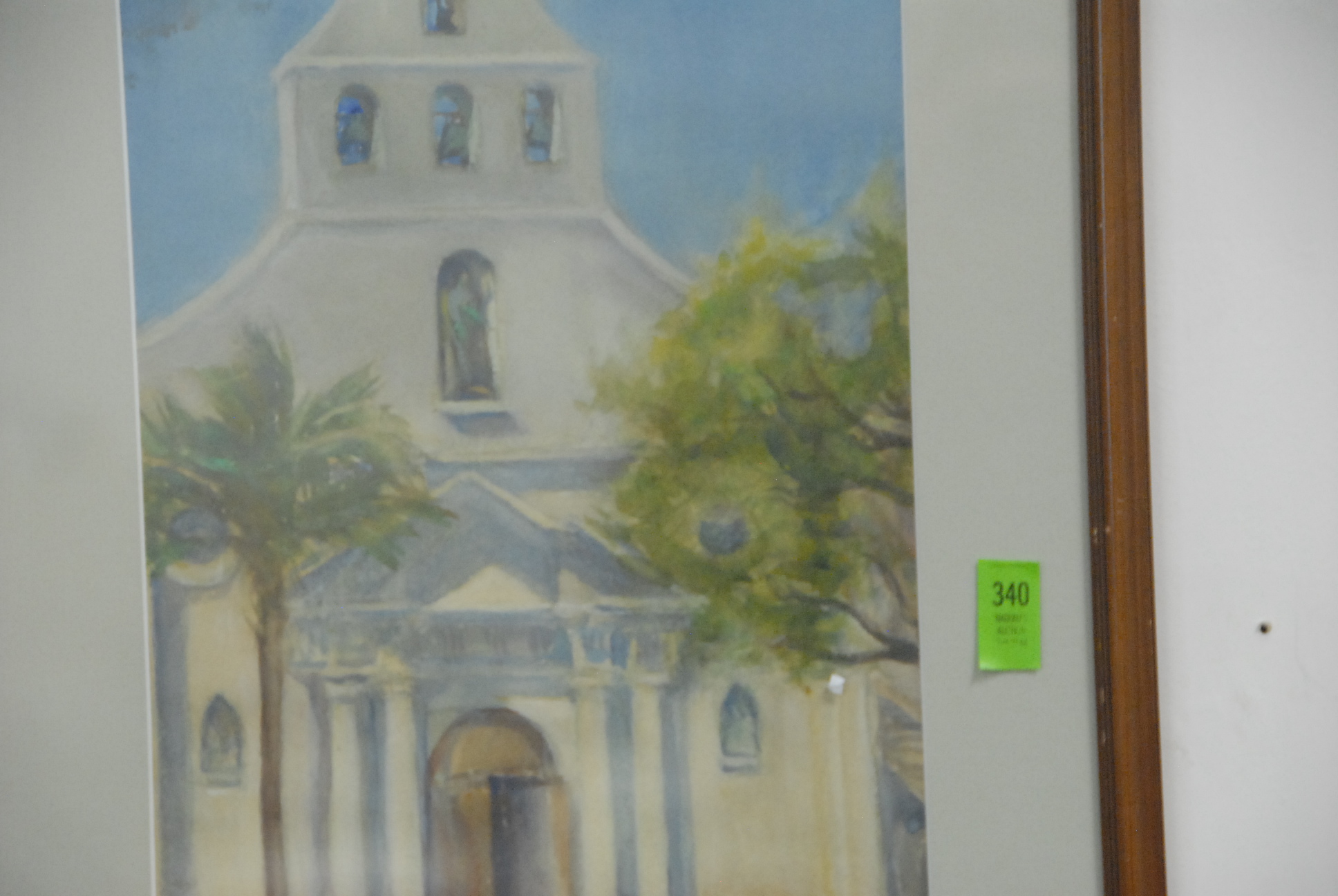 Mary Van der Veer Am 1865 Church Front watercolor signed lower right M. Vanderveer 1919, 13 x 9.