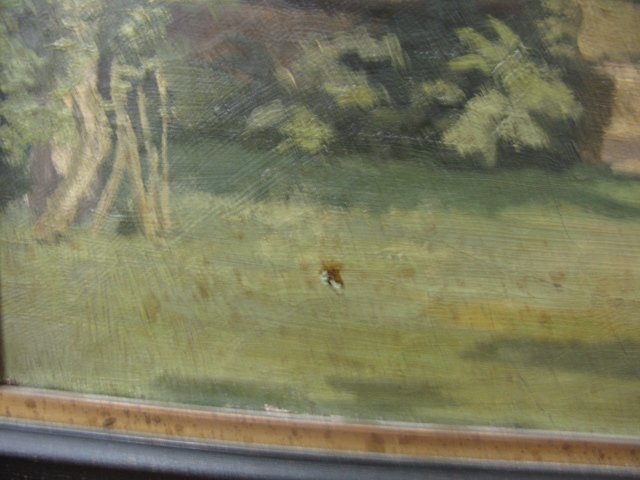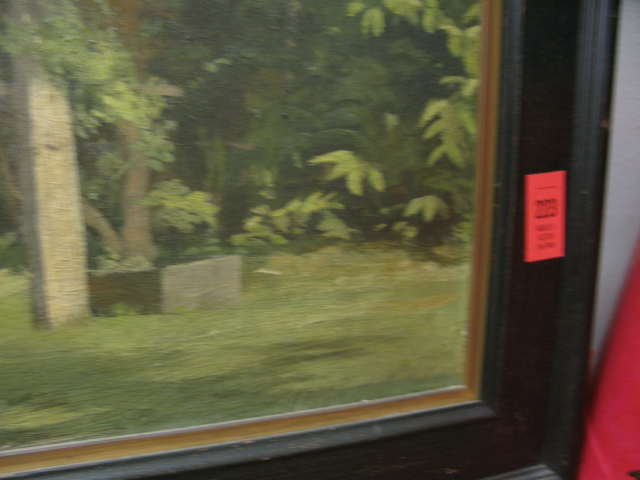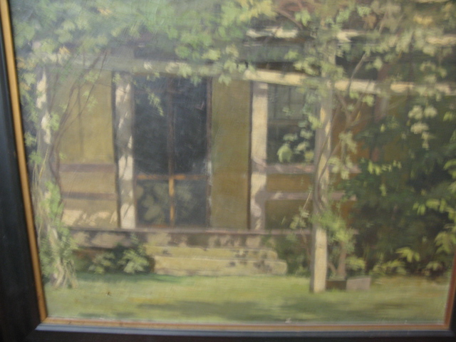 Oil on canvas of house and vines, with Philadelphia label on reverse