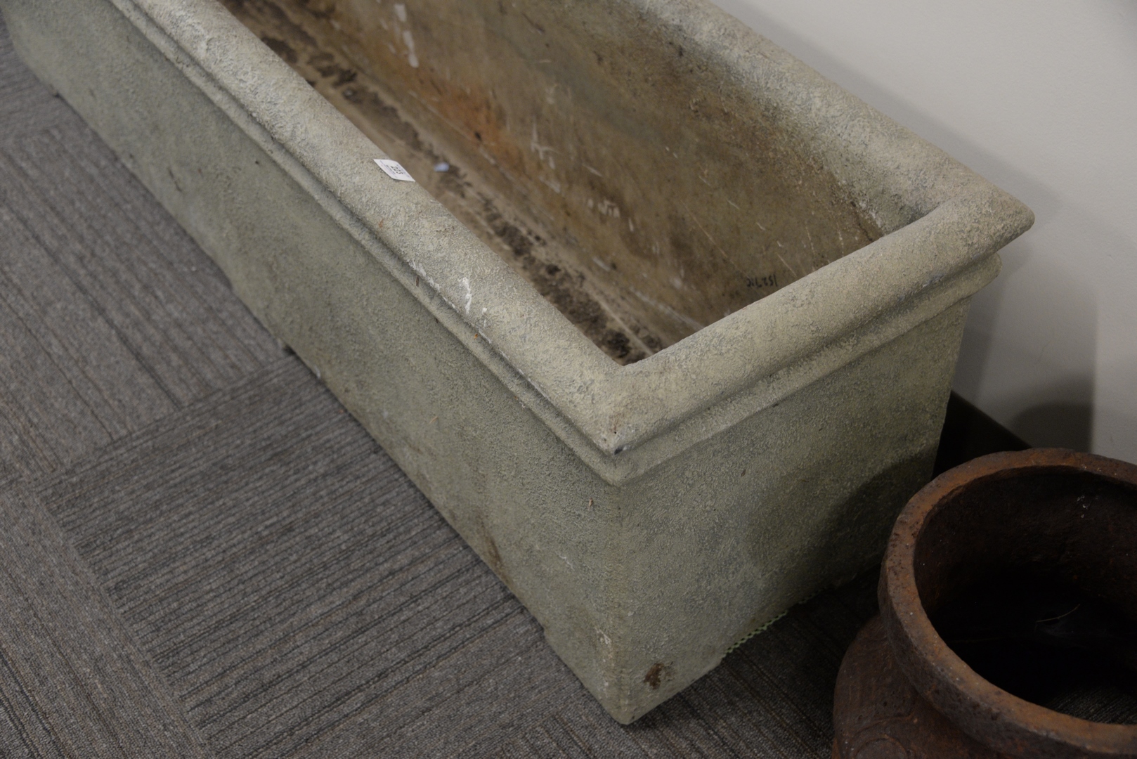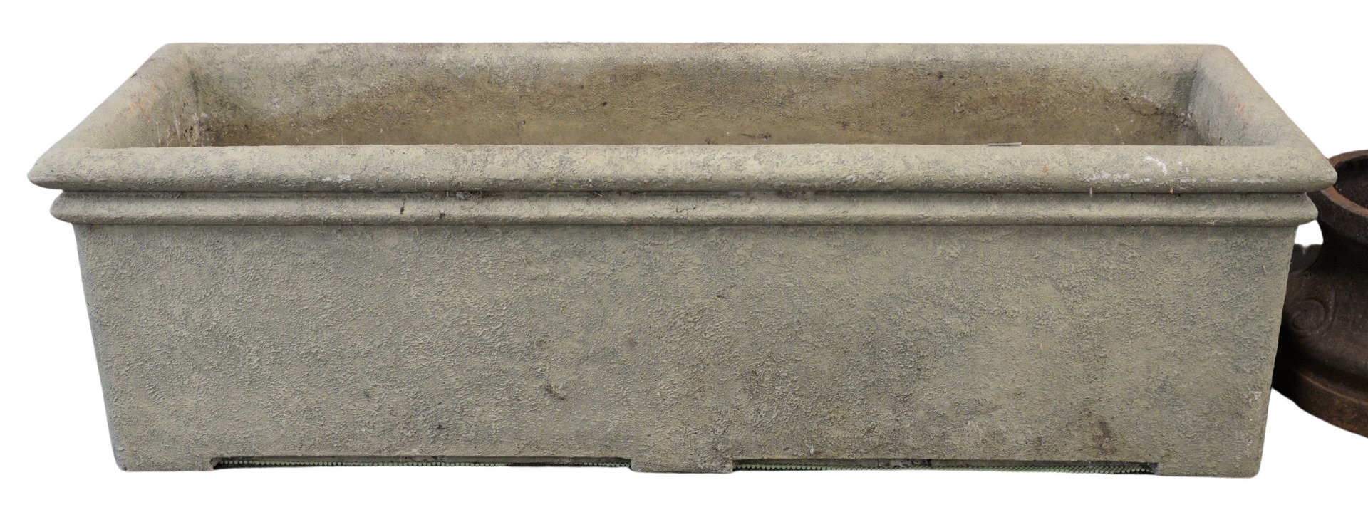 Lot 223: Oversized Rectangle Cast Cement Outdoor Planter, height 18 inches, length 60 inches, depth 18 inches.