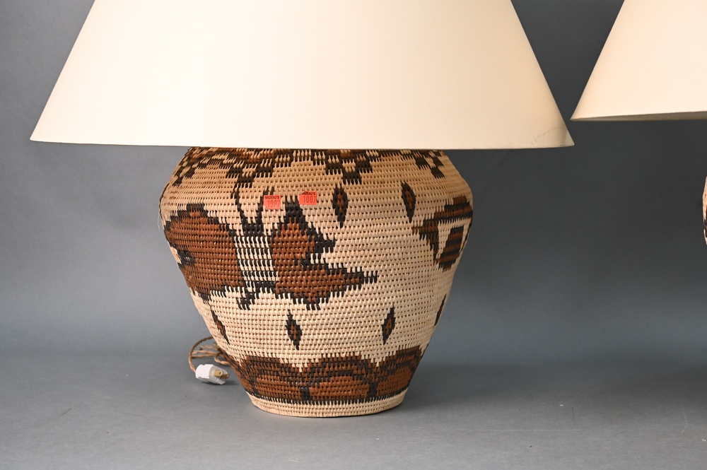 Pair of Indian Basket Style Table Lamps, total height 31 inches.