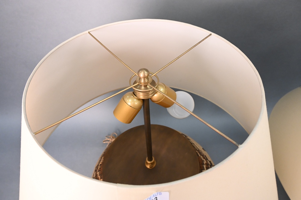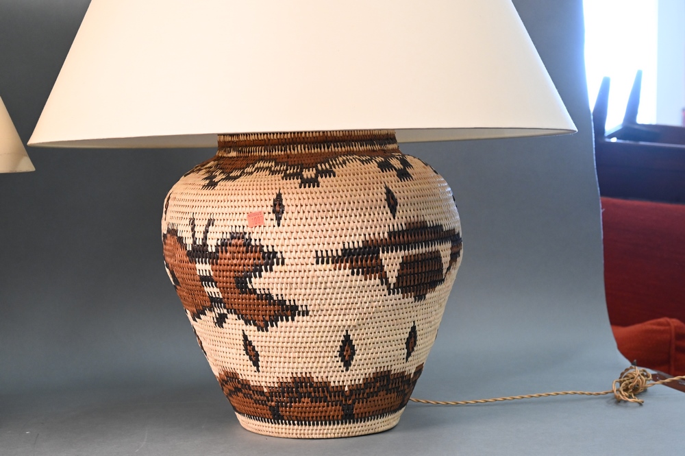 Lot 223: Pair of Indian Basket Style Table Lamps, total height 31 inches.