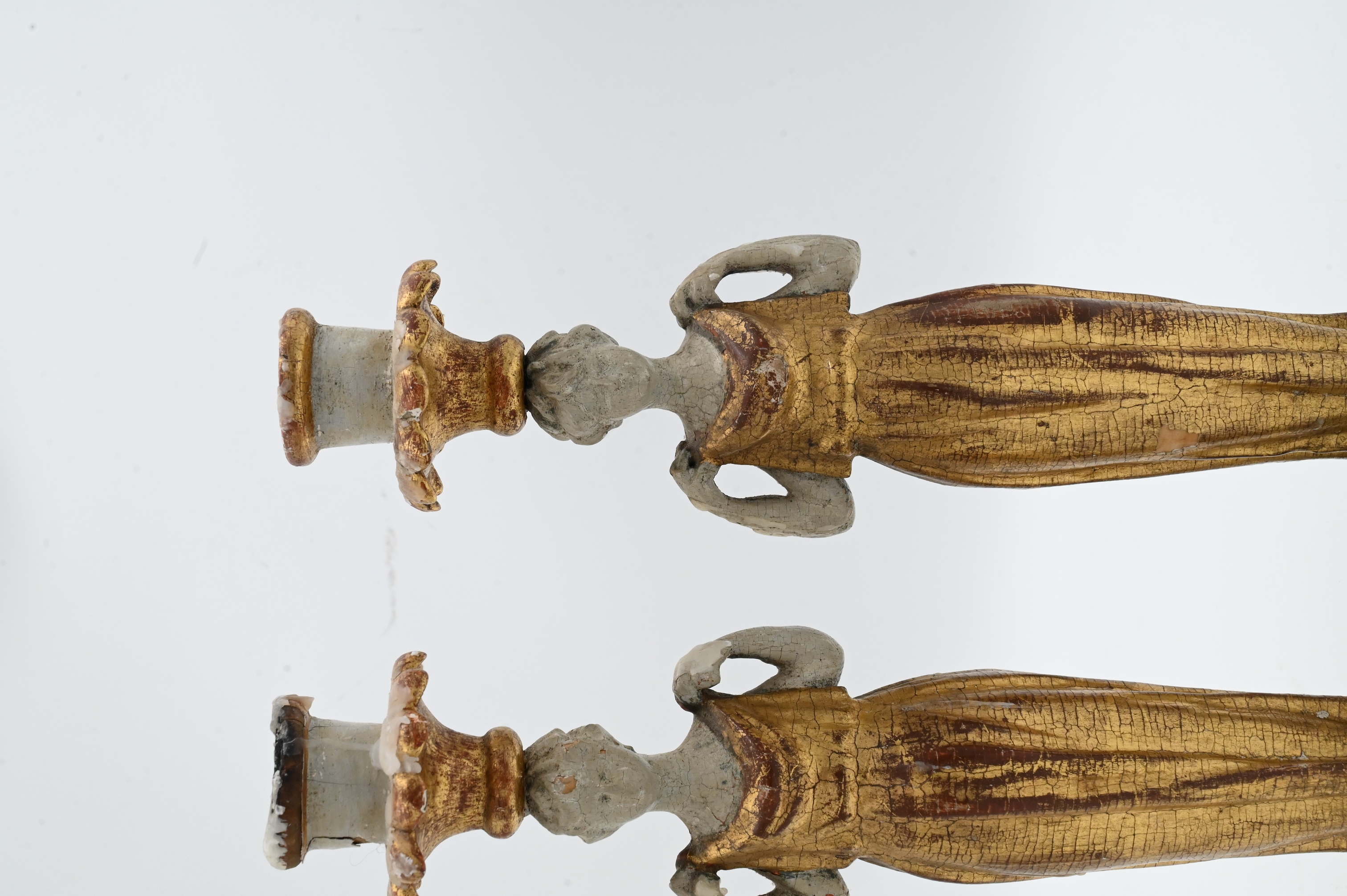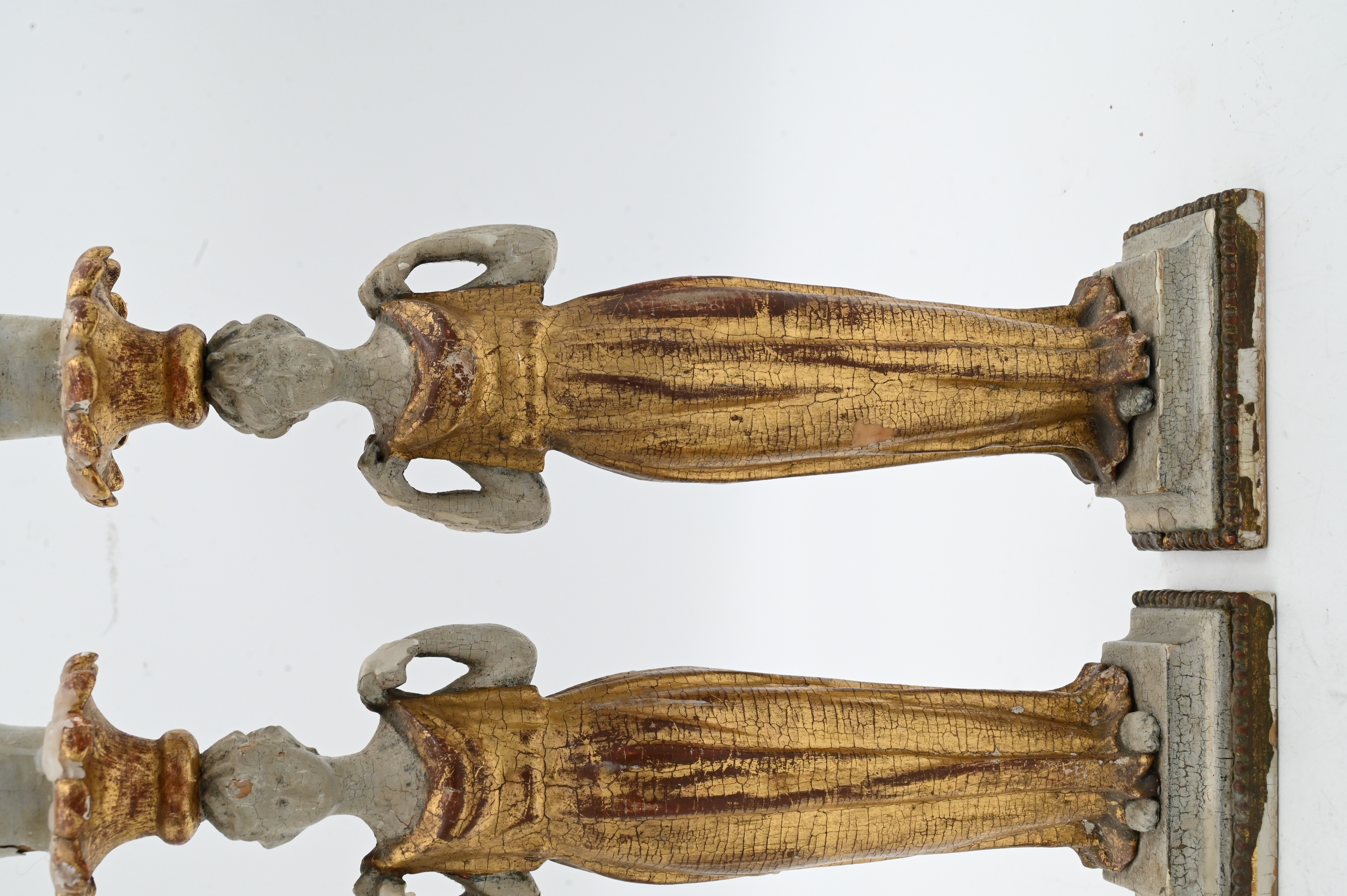 Pair of Neoclassical Giltwood Figural Candlesticks