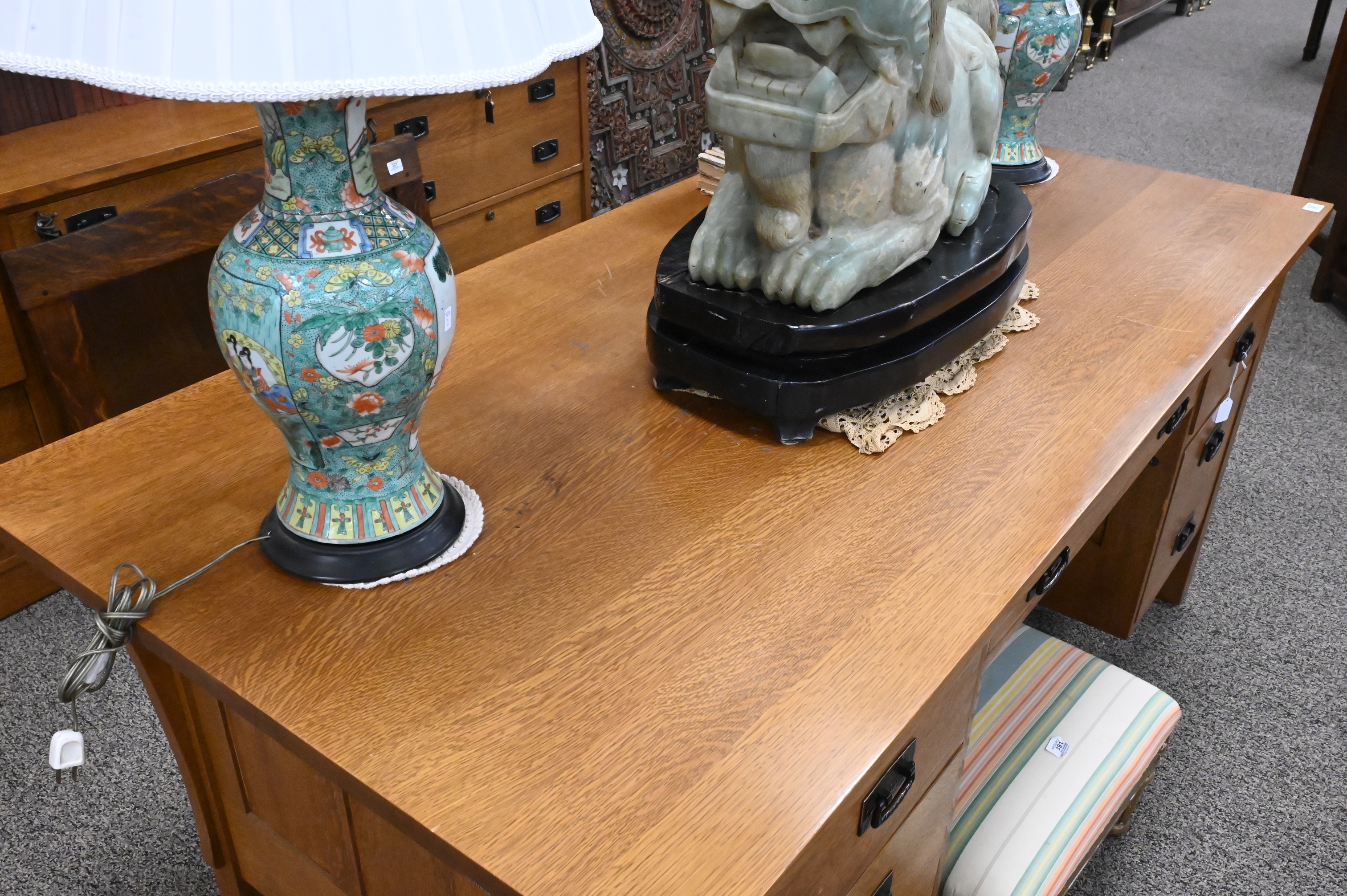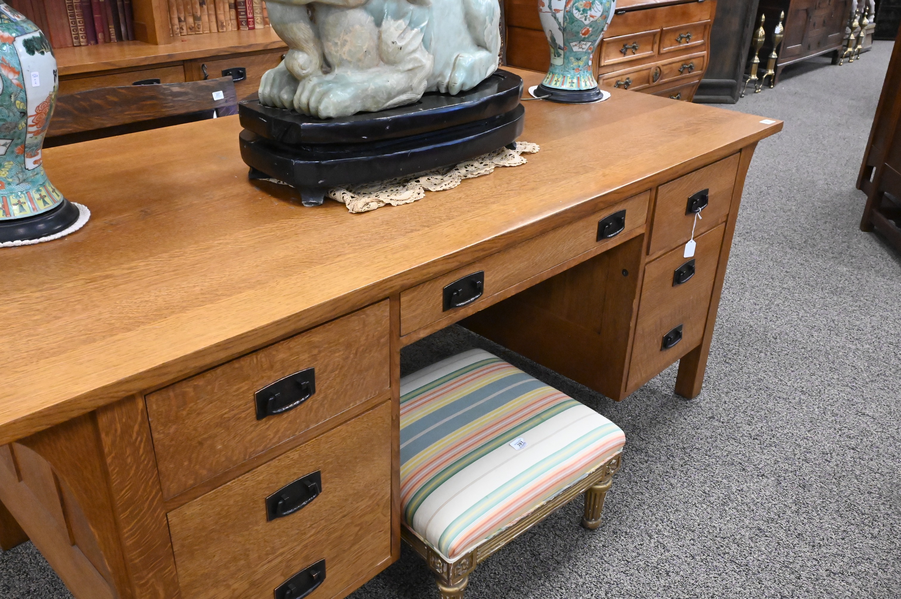 Lot 223: Stickley Arts and Crafts Style Oak Kneehole Desk