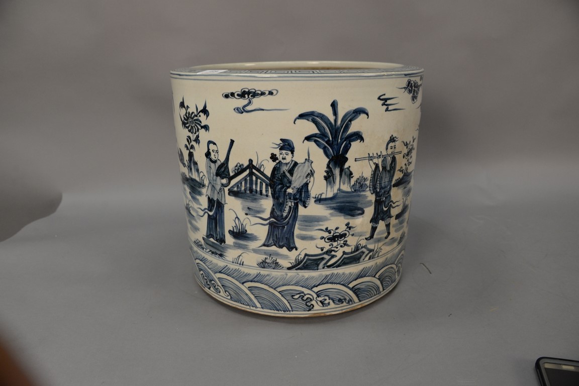 Chinese porcelain planter, Ming pattern. ht. 15in., dia. 17in.