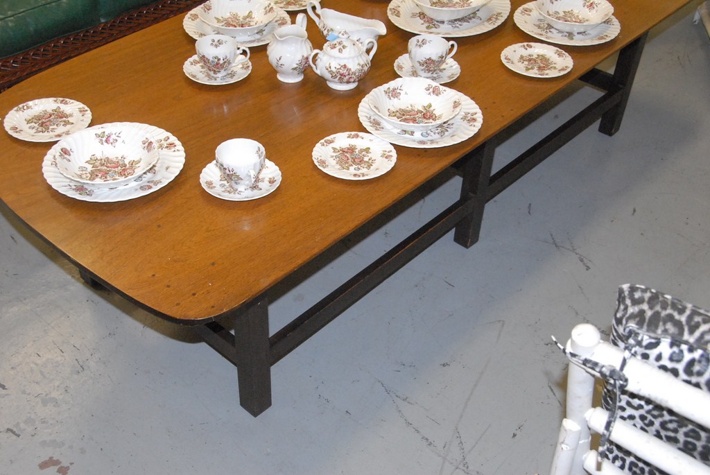 Danish modern coffee table with rounded end, ht. 19in. lg. 72in.
