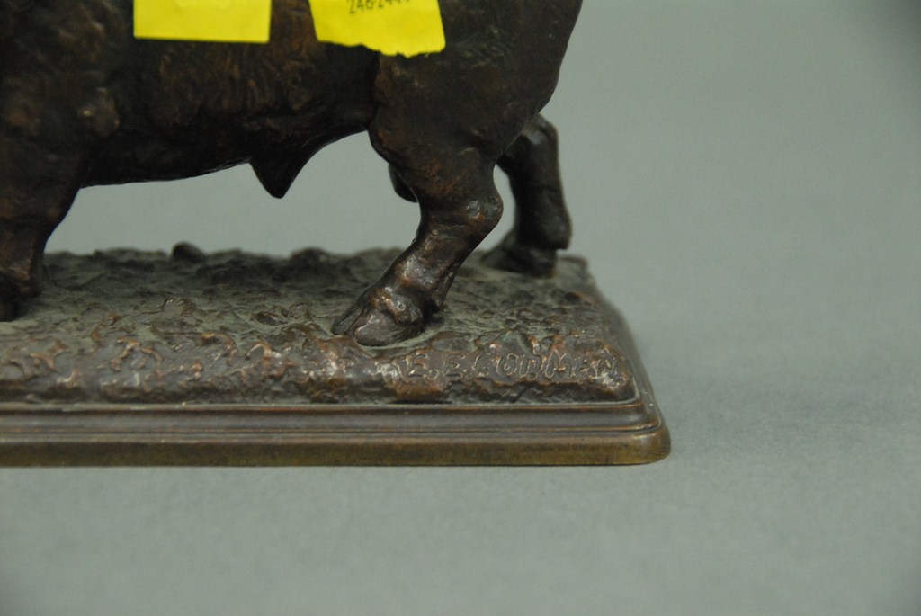 Edwin E. Codman bronze charging bull on bronze base, ht. 4in.