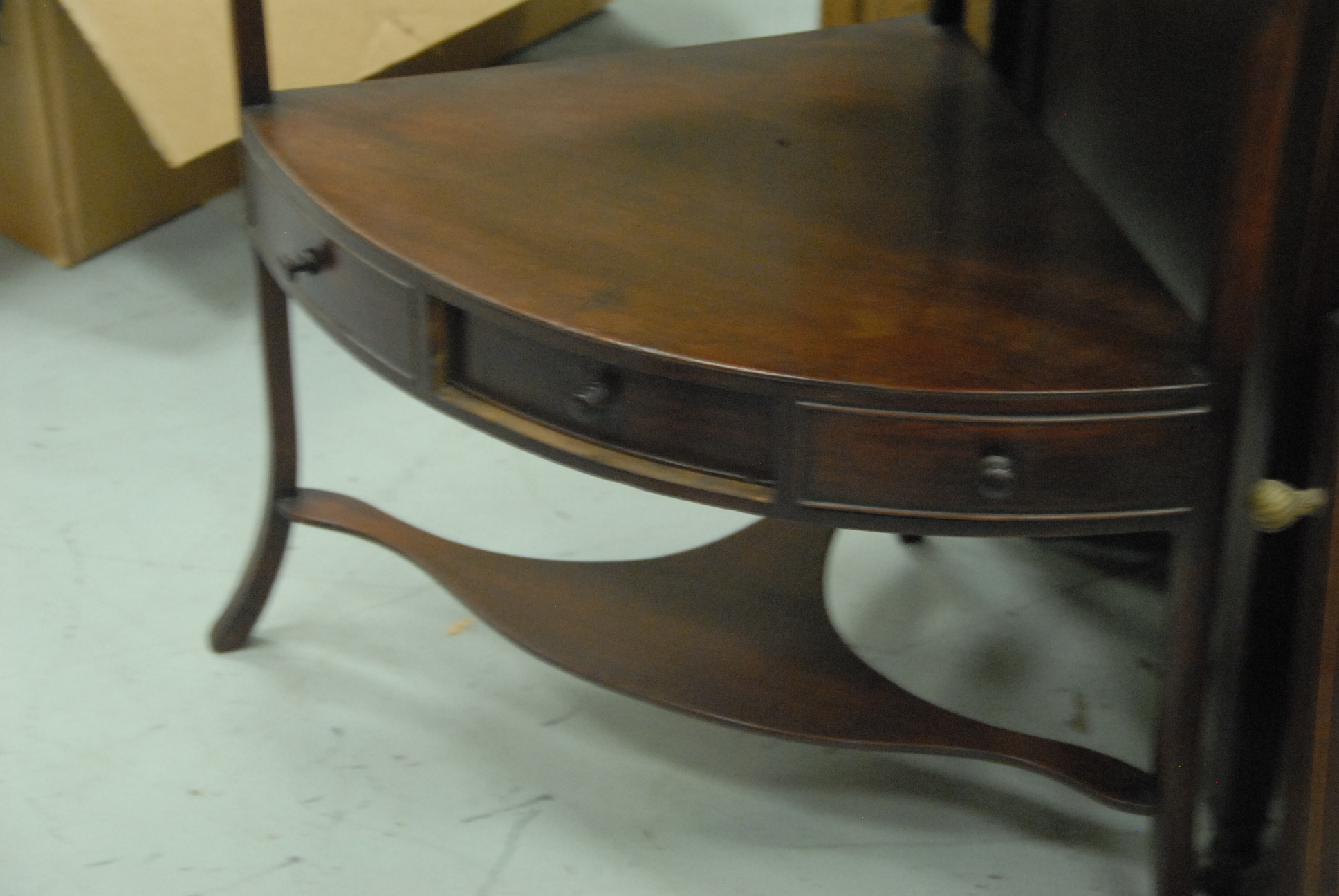 Federal mahogany corner stand with drawer, circa 1800.