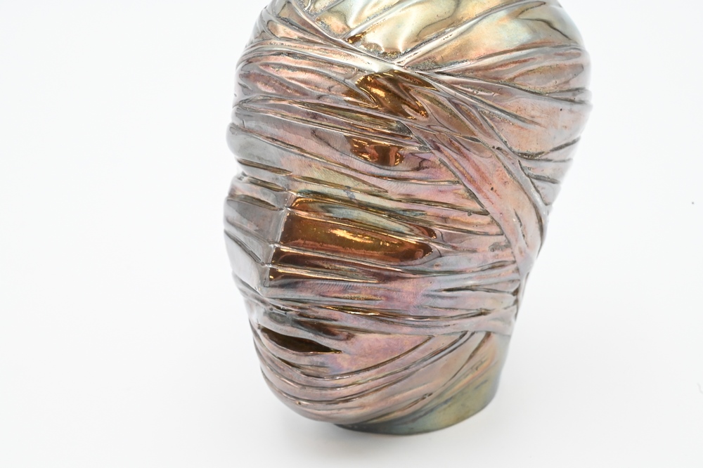 Lot 224: Igor Mitoraj (1944 – 2014), Tete Secrete, silvered metal wrapped head sculpture, Artcurial edition, signed on side Mitoraj 37/50, he…