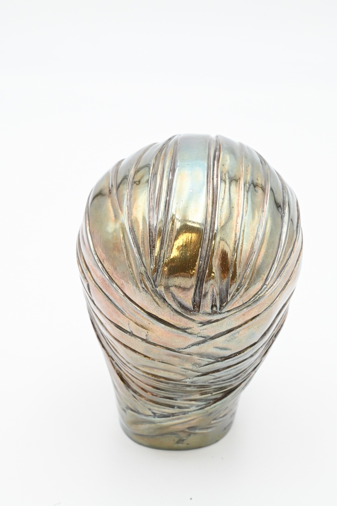 Igor Mitoraj (1944 – 2014), Tete Secrete, silvered metal wrapped head sculpture, Artcurial edition, signed on side Mitoraj 37/50, height 4 1/2 inches.