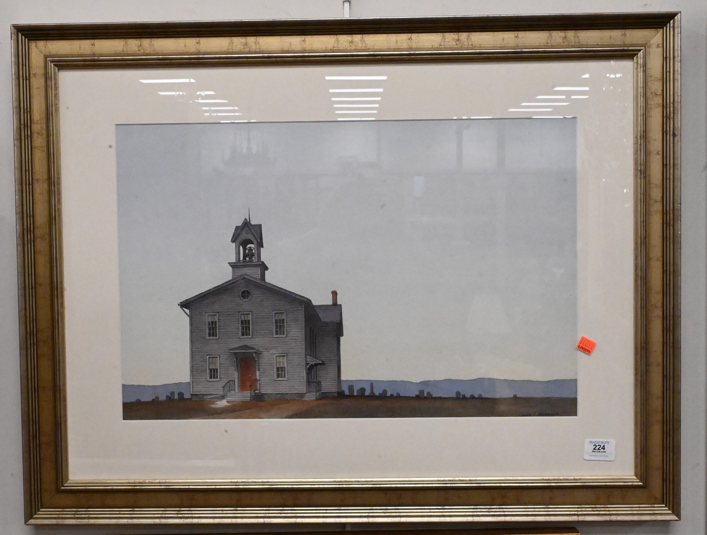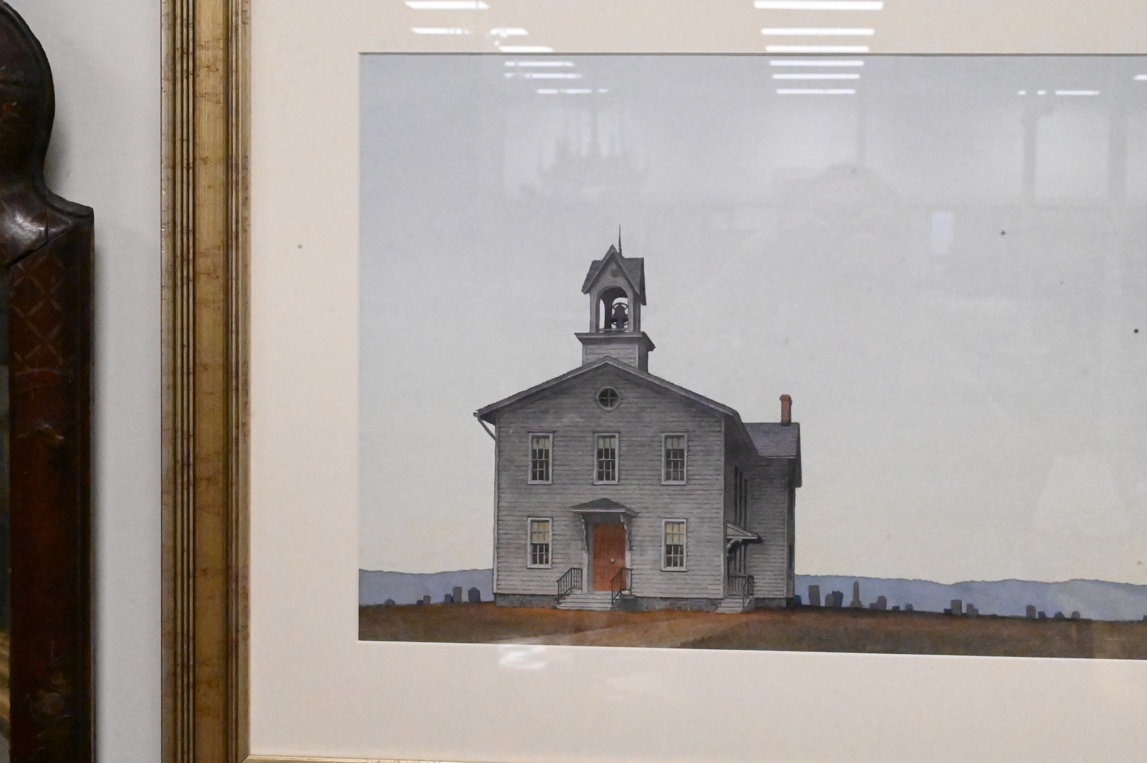 John C. Wenrich (American 1894 – 1970), watercolor, Victorian house in cemetery at dusk, signed lower right, 14 1/2″ x 22″. Provenance: Estate of Peter Tillou, Litchfield, Connecticut.