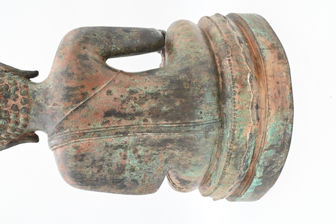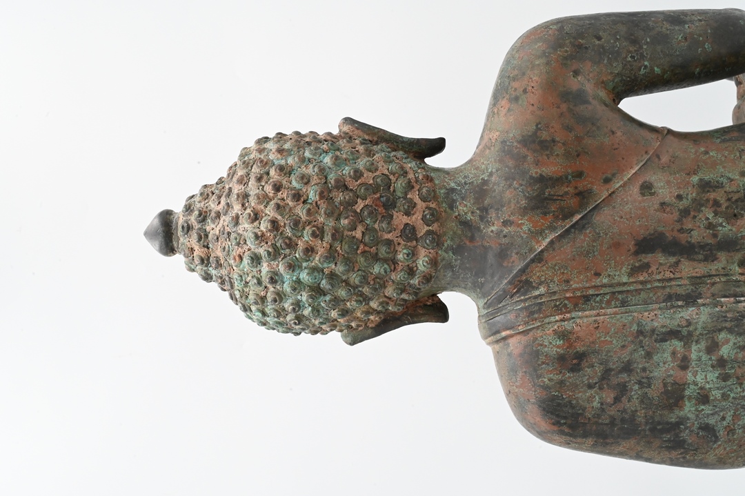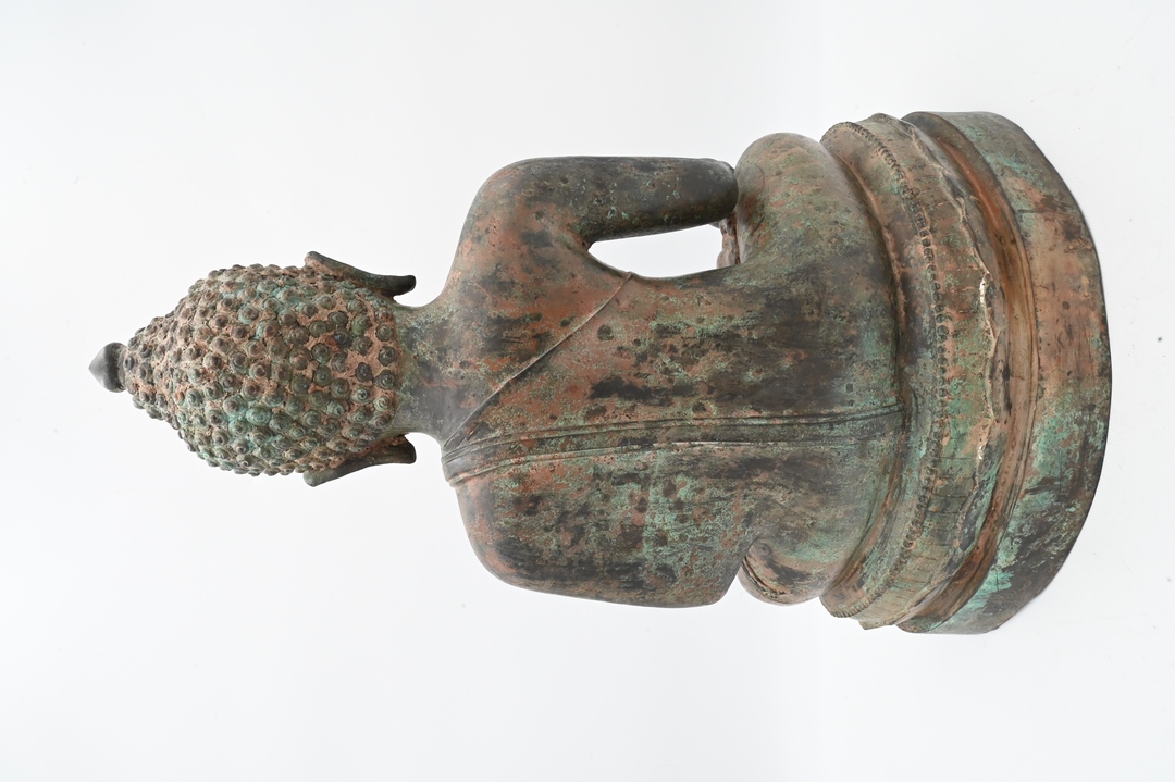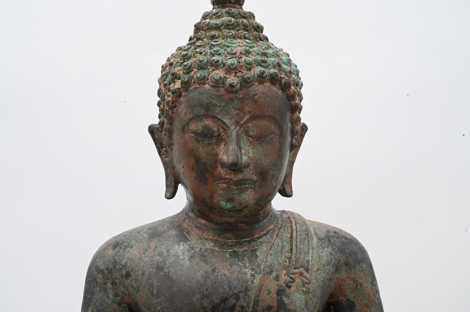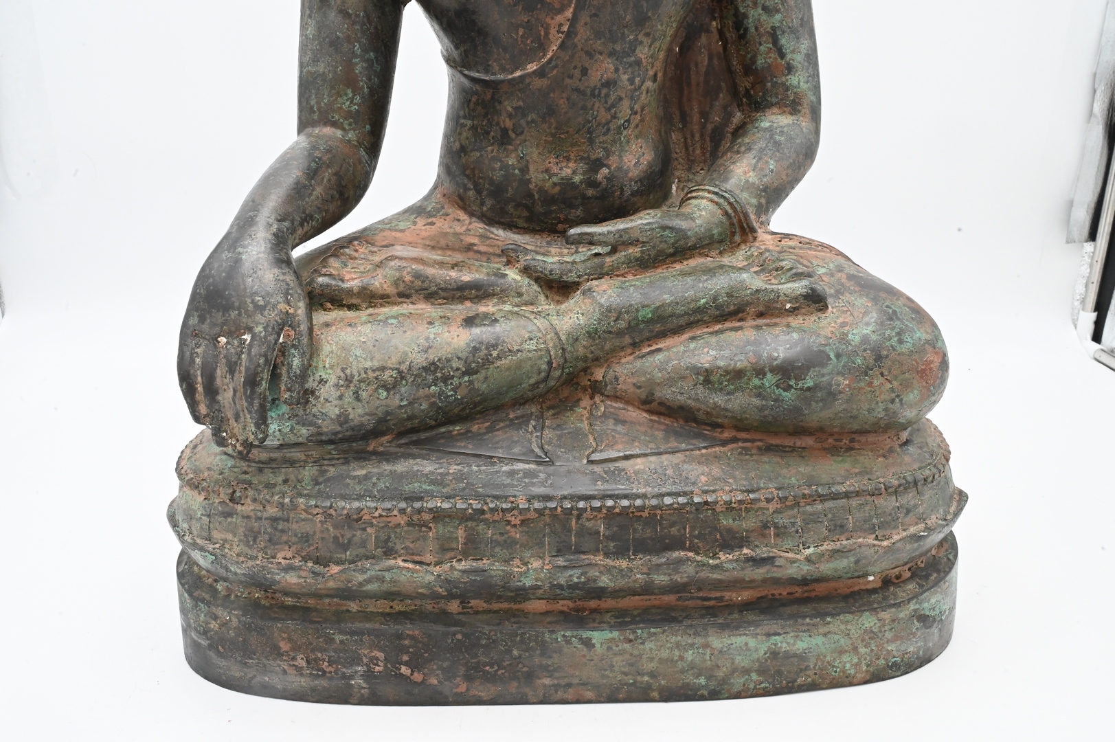 Large Asian Bronze Buddha, seated on lotus, shown in Bhumisparsha Mudra, height 23 1/2 inches.